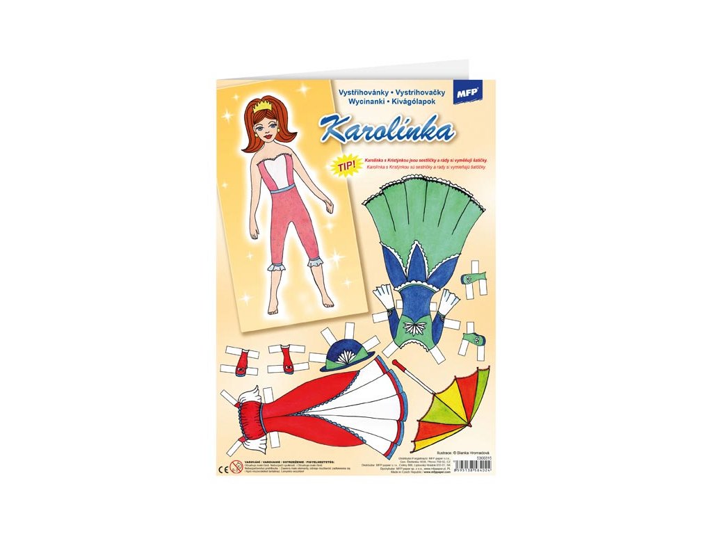 Vystrihovačky s princeznou Karolínkou, vhodné pre mladé slečny. Obleč si princeznú Karolínku podľa svojho vlastného vkusu. Vystrihovačky sú na 2 listoch formátu A4. Nájdeš tu princeznú, veľa rôznych šiat, črievičiek a doplnkov. Vystrihovačky rozvíjajú kreativitu detí pomocou rôznych tvarov, farieb a taktiež zlepšujú motoriku ruky. NÁVOD: 1. Podľa obrysu si vystrihni princeznú a oblečky. 2. Vyber si ten správny obleček a pomocou bielych prúžkov ho zahni okolo siluety princeznej (biele prúžky slúžia k záhybu). 3. Oblečky môžeš jednoducho meniť, kedy sa ti zachce. Papier: 235 g + lamino VAROVANIE: Nevhodné pre deti do 3 rokov. Nebezpečenstvo vdýchnutia a prehltnutia malých častíc. Uvedená cena je za 1 ks.Dodatočné parametre
