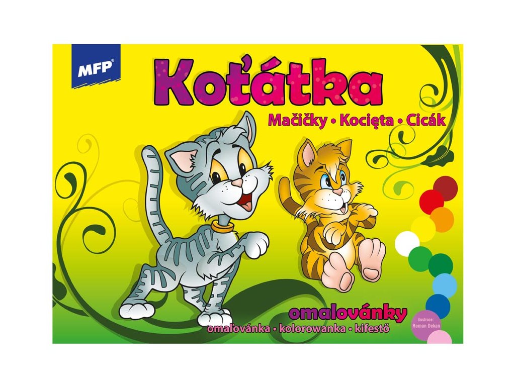 Detské omaľovánky MFP - Mačičky. Urobte si pohodové popoludnie s deťmi a vyfarbite si obrázok. Tieto omaľovánky sú jednoduché s veľkými obrázkami, teda vhodné aj pre tie najmenšie deti. Vyfarbovanie obrázkov pomôže rozvíjať množstvo schopností a zručností, najmä má veľký vplyv na jemnú motoriku ruky. Zakúpiť si u nášho môžete aj kvalitné farebné pastelky. Ilustroval: Roman Dekan Formát omaľovánok: A5 Počet predlôh na vymaľovanie: 7 (mačiatka, mačičky, kocúri) Počet strán: 16 Varovanie: Nevhodné pre deti do 3 rokov. Nebezpečenstvo vdýchnutia a prehltnutia malých častíc. Uvedená cena je za 1 ks.Dodatočné parametre