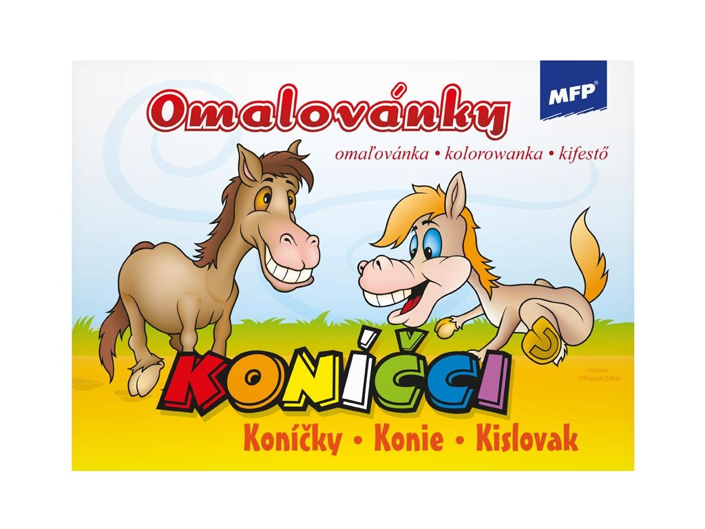 Detské omaľovánky MFP - Koníky. Urobte si pohodové popoludnie s deťmi a vyfarbite si obrázok. Tieto omaľovánky sú jednoduché s veľkými obrázkami, teda vhodné aj pre tie najmenšie deti. Vyfarbovanie obrázkov pomôže rozvíjať množstvo schopností a zručností, najmä má veľký vplyv na jemnú motoriku ruky. Zakúpiť si u nášho môžete aj kvalitné farebné pastelky. Ilustroval: Roman Dekan Formát omaľovánok: A5 Počet predlôh na vymaľovanie: 8 (poníky, koníky, žriebätá, kobyly) Počet strán: 16 Varovanie: Nevhodné pre deti do 3 rokov. Nebezpečenstvo vdýchnutia a prehltnutia malých častíc. Uvedená cena je za 1 ks.Dodatočné parametre