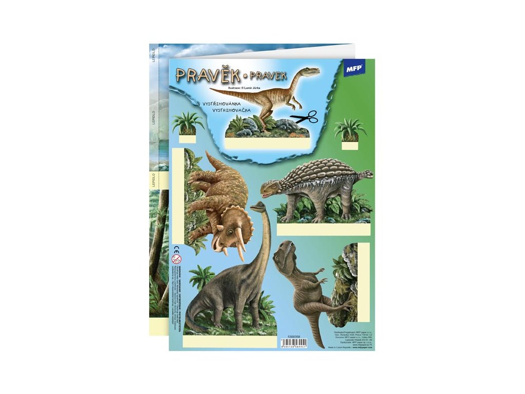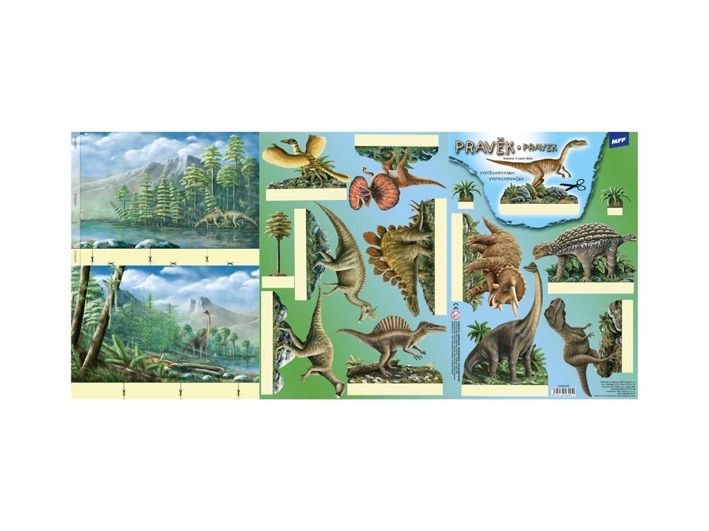 Vystrihovačky Pravek. Užite si veľa zábavy s vystrihovačkou pre deti s dinosaurskou a prehistorickou tematikou. Vystrihovačky MFP Prehistoric sú na 3 listoch formátu A4. Vystrihovačka sa skladá z pozadia a 11 dinosaurov. Návod: Na označené miesta použite lepidlo a nôž. Prerušované čiary znamenajú záhyby. Papier: 235 g + laminát UPOZORNENIE: Nevhodné pre deti do 3 rokov. Nebezpečenstvo vdýchnutia a prehltnutia malých častíc. Uvedená cena je za 1 ks.Dodatočné parametre