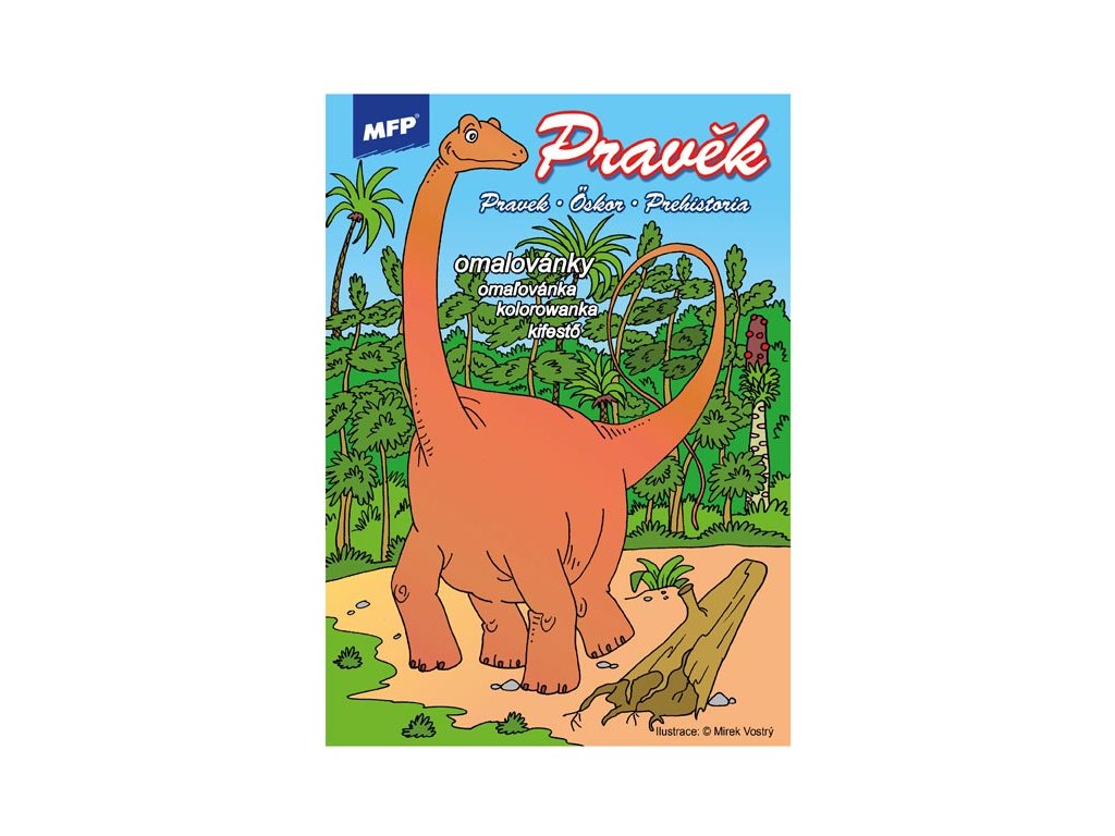 Detské omaľovánky MFP - Pravek. Urobte si pohodové popoludnie s deťmi a vyfarbite si omaľovánku. Vyfarbovanie obrázkov pomôže rozvíjať množstvo schopností a zručností, najmä má veľký vplyv na jemnú motoriku ruky. Nezabudnite si kúpiť aj pastelky a strúhadlo. Vďaka veľkým obrázkom sú tieto omaľovánky vhodné aj pre menšie deti. Omaľovánky majú vzdelávací charakter. Súčasťou omaľovánok je aj pexeso (16 kartičiek), 19cm pravítko a rôzne hry (bludisko, geometrické tvary). Ilustroval: Mirek Vostrý Formát omaľovánok A4 Počet predlôh na vymaľovanie: 8 (triceratops, stegosaurus, iguandon, tyranosaurus rex, brontosaurus, pterodaktyl, ai) Počet strán: 16 Varovanie: Nevhodné pre deti do 3 rokov. Nebezpečenstvo vdýchnutia a prehltnutia malých častíc. Uvedená cena je za 1 ks.Dodatočné parametre