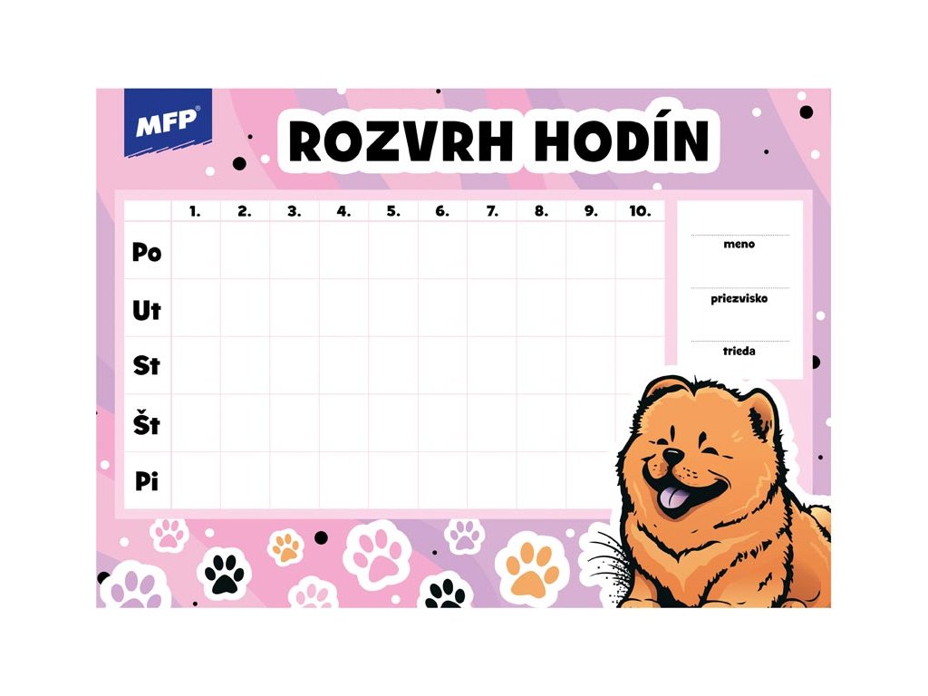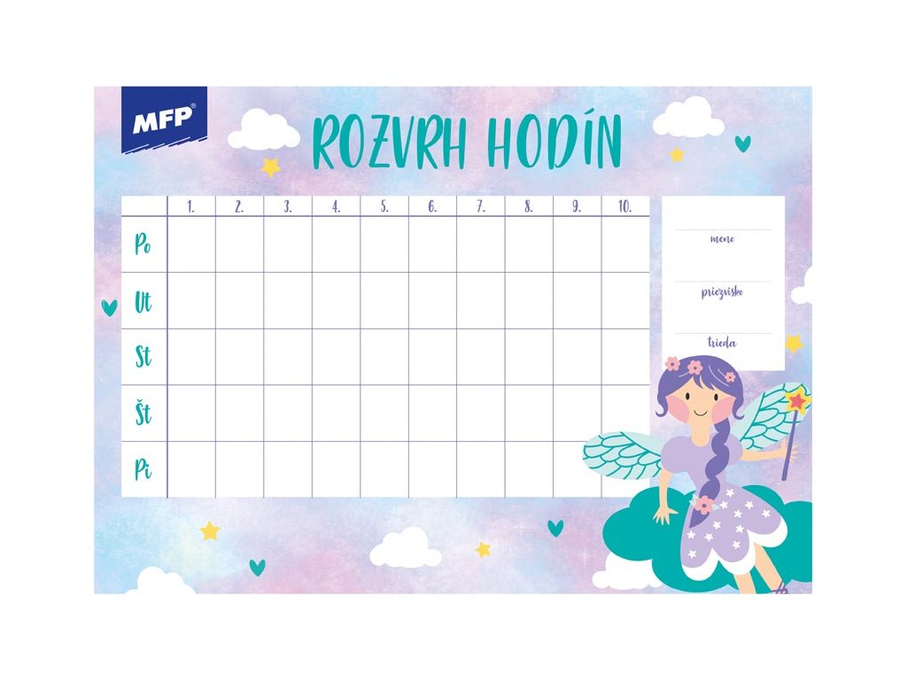 Detský rozvrh hodín, s ťahákom – vybranými slovami, matematickými vzorcami a malou násobilkou. Rozvrh hodín obsahuje: - 10 vyučovacích hodín - malú násobilku - vymenované slová - geometrické vzorce - pravítko Formát: A5 Motív: plameniak, šteňa, leňochod, auto, kôň, mačiatko, smajlíci, grafity Dodávame v rôznych motívoch po 8 ks podľa skladovej zásoby. Uvedená cena je za 1 ks.Dodatočné parametre