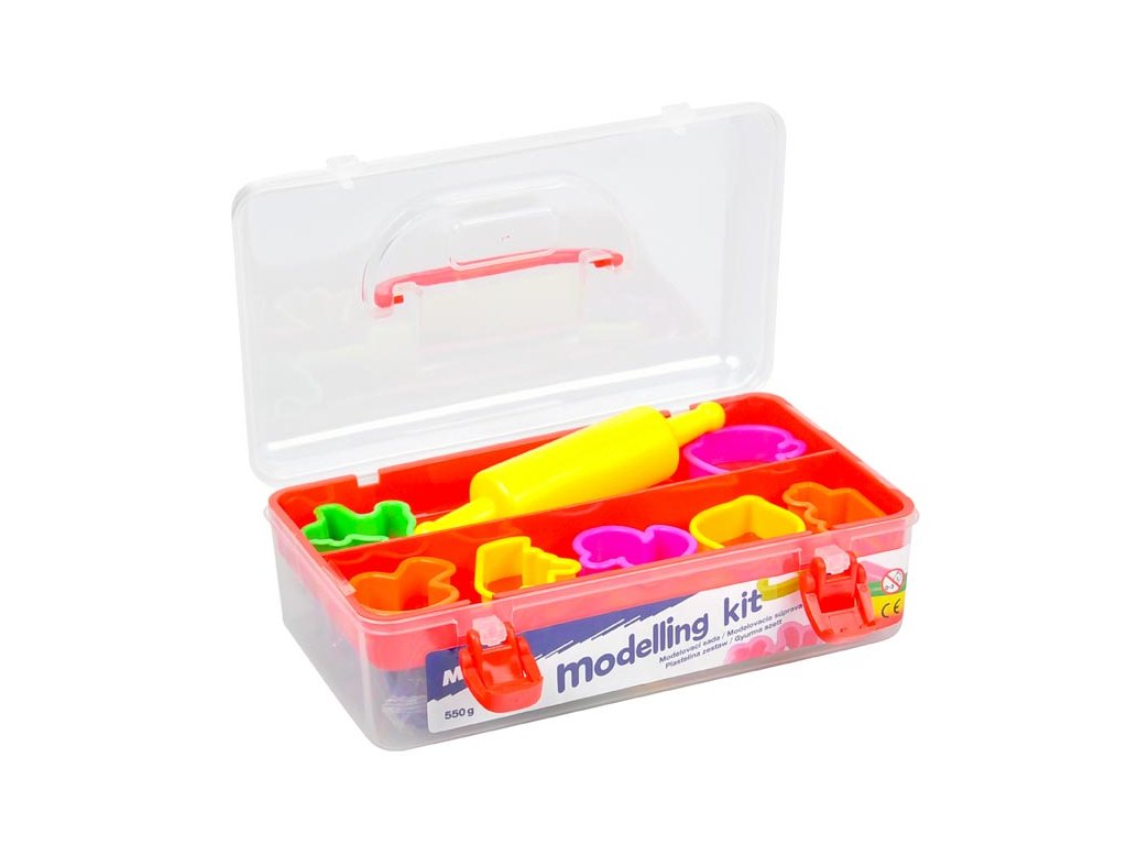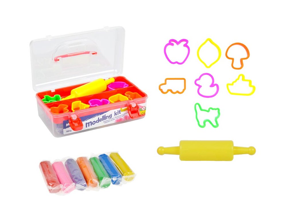 Kreatívna modelovacia súprava (550 g), ktorá rozvíja zručnosť a kreatívnosť dieťaťa. Súprava obsahuje: - 7 farieb modelovacej hmoty (ružová, oranžová, žltá, červená, zelená, modrá a fialová) - 7 farebných formičiek rôznych tvarov - 1 valček Varovanie: Nevhodné pre deti do 3 rokov. Nebezpečenstvo vdýchnutia a prehltnutia malých častí. Dodávame v plastovom kufríku s uchom. Uvedená cena je za 1 súpravu.Dodatočné parametre