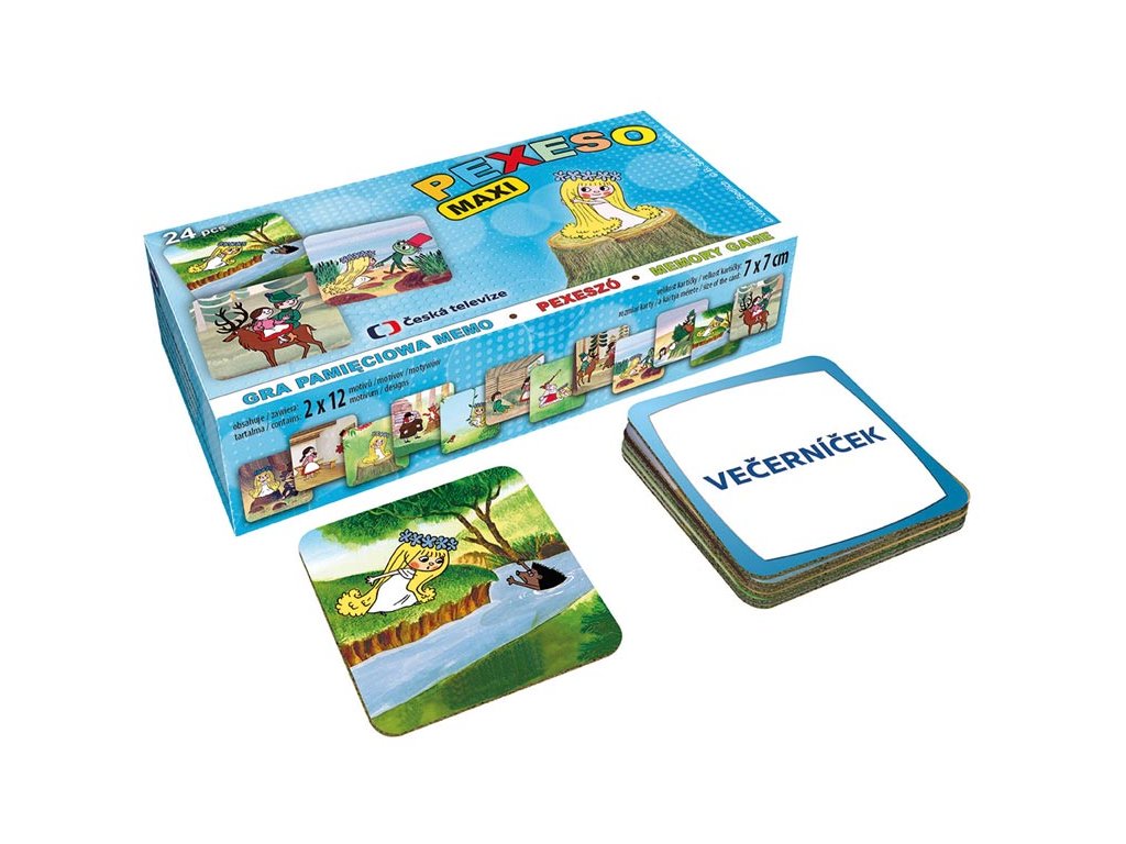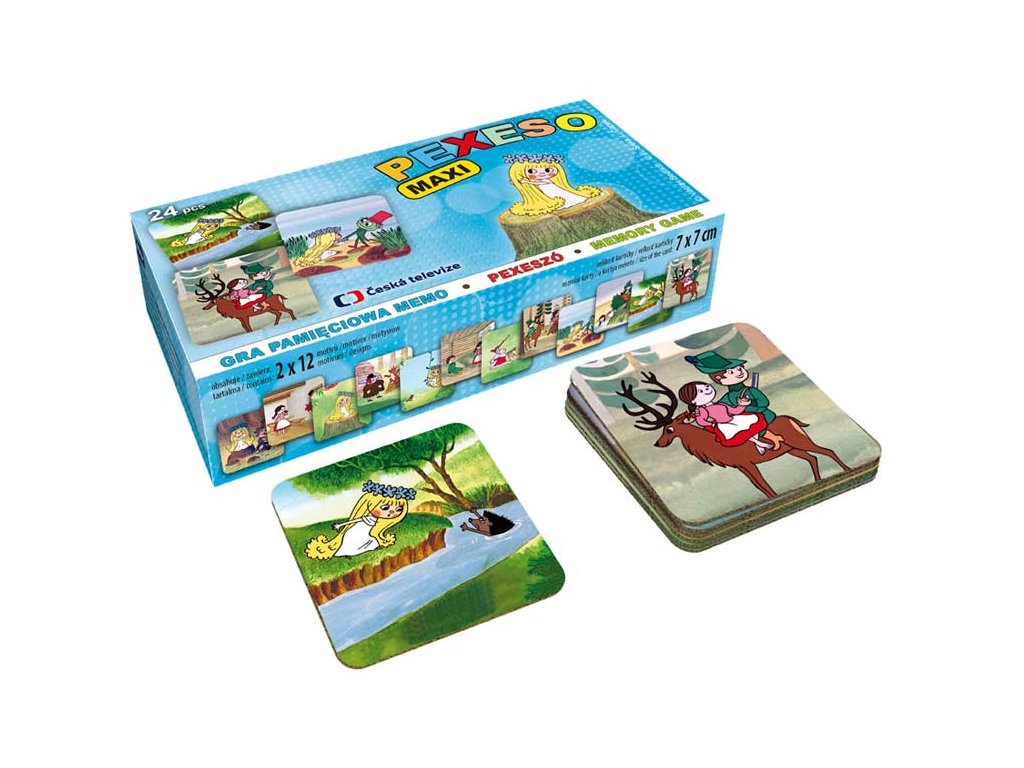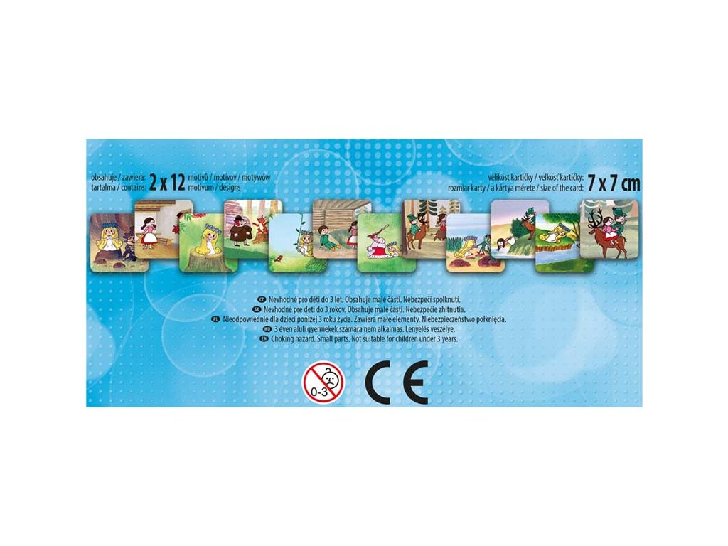 Pexeso pre malé deti s obrázkami víla Amálka + horár Robátko. Táto kartová hra obsahuje 12 dvojíc obrázkov. Pexeso je vyrobené z 3 mm silného materiálu aby ho malé deti mohli lepšie chytiť a otočiť. Hracie kartičky sú veľké 7 x 7 cm. Výborná učebná pomôcka pre deti a rodičov. Vedeli ste, že slovo PEXESO vzniklo spojením slov PEKELNE SA SÚSTREĎ? Návod na hru pexeso: Pexeso môžu hrať najmenej dvaja hráči. Všetky rozstrihané kartičky zamiešajú a rozložia obrázkom nadol. Nesmú sa pri tom pozerať na obrázok. Hráči si určia poradie hry. Hráč otočí dve ľubovoľné kartičky tak, aby si aj ostatní spoluhráči mohli obrázky a ich umiestenie zapamätať. Ak kartičky nemajú rovnaké obrázky, otočí ich a vráti na pôvodné miesto. Pokračuje ďalší hráč, ktorý je na rade. Ak objaví rovnaké obrázky, získava bod a obe kartičky vyradí z hry. Pokračuje do tej chvíle, kedy otočí dva rôzne obrázky. Vyhráva hráč, ktorý získa viac bodov. Vhodné pre deti od 3 rokov. Nebezpečenstvo vdýchnutia a prehĺtnutia malých častí.Dodatočné parametre