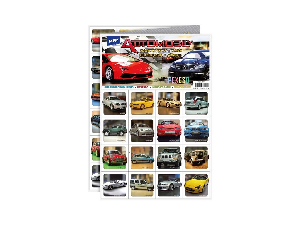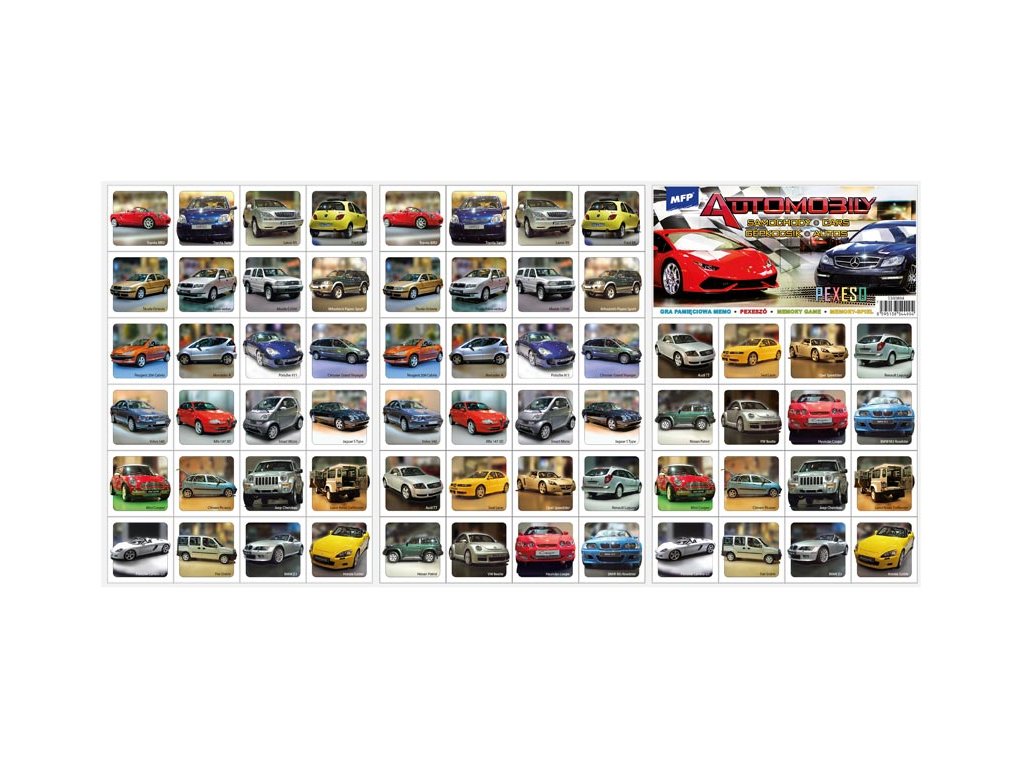 Populárna detská stolová hra pexeso pre malé deti s obrázkami automobilov. Hra obsahuje 32 dvojíc obrázkov veľkosti 51x51 mm. Vynikajúca učebná pomôcka pre deti aj pre rodičov. Naučte svoje deti základné anglické slovíčka a precvičujte ich pamäť. Vedeli ste, že slovo „pexeso“ vzniklo zo slov PEKELNĚ SE SOUSTŘEĎ? Návod na hru pexeso: Pexeso môžu hrať najmenej dvaja hráči. Všetky rozstrihané kartičky zamiešajú a rozložia obrázkom nadol do štvorca 8 x 8 kartičiek. Nesmú sa pri tom pozerať na obrázok. Hráči si určia poradie hry. Hráč otočí dve ľubovoľné kartičky tak, aby si aj ostatní spoluhráči mohli obrázky a ich umiestenie zapamätať. Ak kartičky nemajú rovnaké obrázky, otočí ich a vráti na pôvodné miesto. Pokračuje ďalší hráč, ktorý je na rade. Ak objaví rovnaké obrázky, získava bod a obe kartičky vyradí z hry. Pokračuje do tej chvíle, kedy otočí dva rôzne obrázky. Vyhráva hráč, ktorý získa viac bodov. Rozmer kartičky: 51x51 mm Rozměr pexesa: 3 x A4 Papier krieda matná 350g + lamino lesk 1/1. Vhodné pre deti od 3 rokov. Nebezpečenstvo vdýchnutia a prehĺtnutia malých častí.Dodatočné parametre