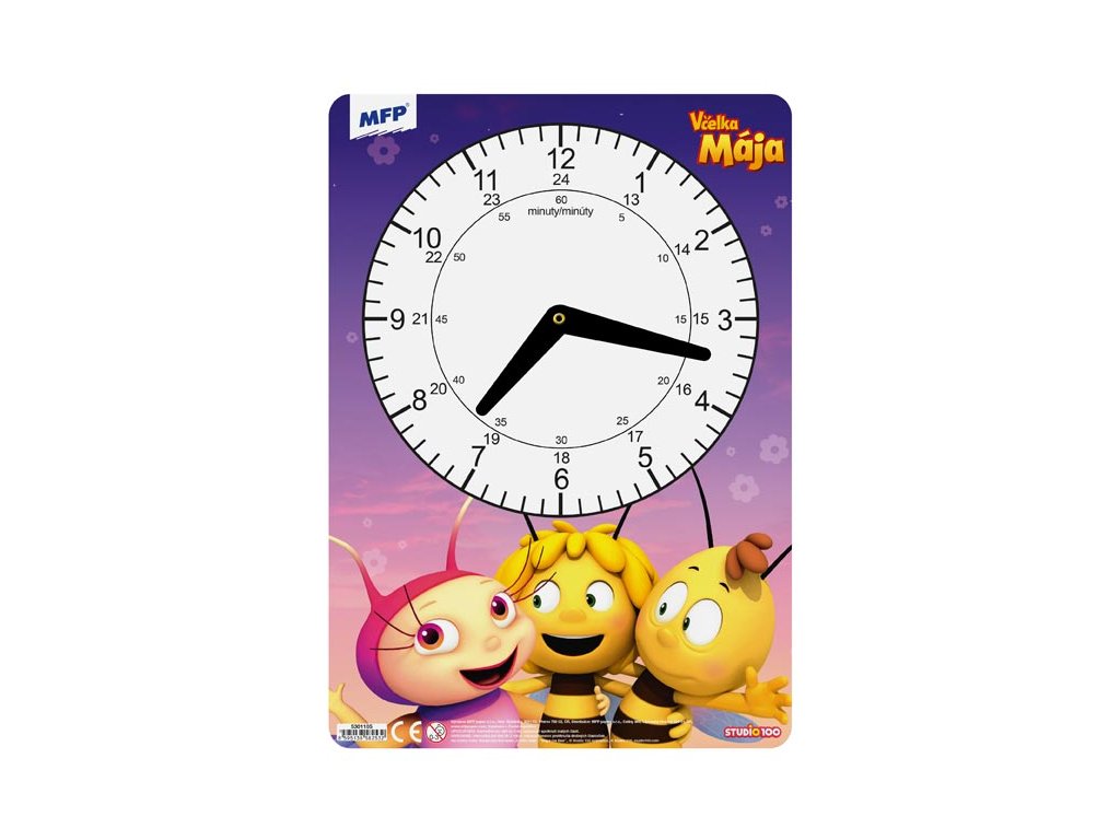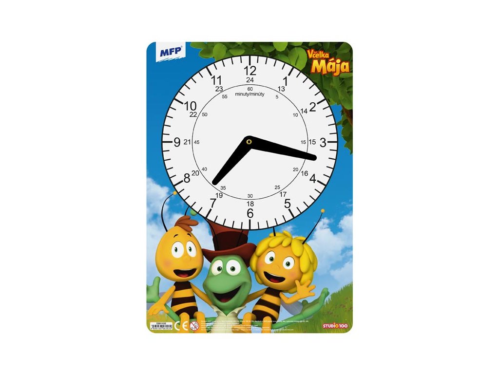 Detské, papierové hodiny s Včielkou Majou. Didaktická pomôcka, dobre využiteľná k výučbe času u detí predškolského veku alebo u prvákov. Tieto cvičné hodiny nesmú chýbať Vášmu dieťaťu pri nástupe do prvej triedy základnej školy. UPOZORNENIE: Nevhodné pre deti do 3 rokov. Nebezpečenstvo vdychnutia a prehltnutia malých častíc. Dodávame v mixe podľa skladových zásob v 4 rôznych variantách. Uvedená cena je za 1 ks.Dodatočné parametre