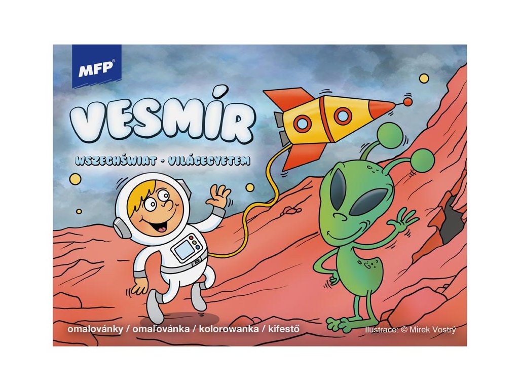 Detské maľovanky MFP - Vesmír. Urobte si pohodové popoludnie so svojimi deťmi a vyfarbite si obrázok. Tieto maľovánky sú jednoduché s veľkými obrázkami, takže sú vhodné aj pre najmenšie deti. Vyfarbovanie obrázkov pomôže rozvíjať celý rad zručností a schopností, najmä má veľký vplyv na jemnú motoriku. U nás si môžete kúpiť aj kvalitné farebné pastelky. Počet strán: 16 Ilustroval: M. Vostrý Formát omaľovánky: A5 Počet předloh k vymaľovaniu: 8 (vesmír) Upozornenie: Nevhodné pre deti do 3 rokov. Nebezpečenstvo vdýchnutia a prehltnutia malých častíc. Uvedená cena je za 1 ks.Dodatočné parametre