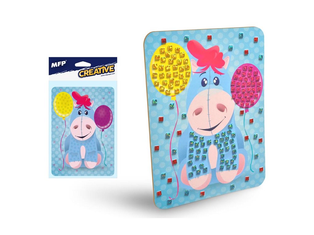 Mozaika oslík. Vytvorte si vlastný mozaikový obrázok oslíka! BALENIE OBSAHUJE: - predtlačený obrázok - penové samolepky rôznych farieb - stojanček na obrázok NÁVOD: 1. Penové samolepky postupne odlepujte z blistra a podľa čísel ich nalepte na predtlačený obrázok. 2. Papierový stojanček poskladajte podľa perforácie. VAROVANIE: Používajte pod dozorom dospelej osoby, obal odstráňte z dosahu detí. Nie je vhodné pre deti do 3 rokov, obsahuje malé časti, nebezpečie prehltnutia a udusenia. Uvedená cena je za 1 ks.Dodatočné parametre