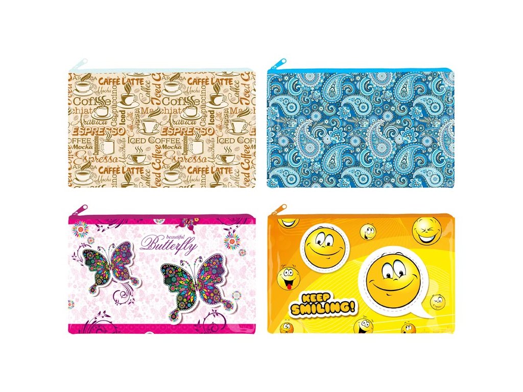 PP zložka so zipsom A5. Zložka slúži ako pomocník pre triedenie a ukladanie dokumentov, takže ich budete mať vždy pohromade, vhodná aj na písacie potreby a ďalšie pomôcky. Materiál: PP Rozmer: 240 x180 mm Motív: káva, motýle, mandaly, smajlíci Dodávame v mixe po 4 ks podľa skladovej zásoby. Uvedená cena je za 1 ks.Dodatočné parametre