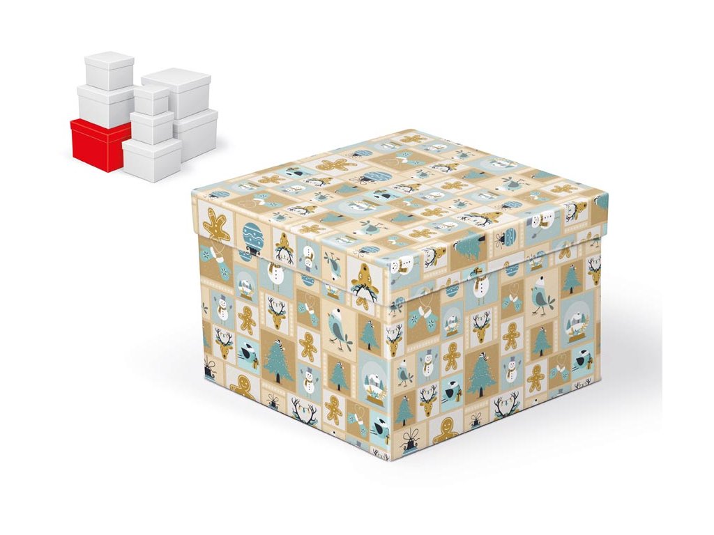 Vianočná darčeková krabička s rozmermi 20 x 20 x 14 cm Darčeková krabička s motívom vianočných symbolov. Ideálna pre rýchle a ľahké zabalenie vianočných darčekov. Dodávame iba v sete 8 darčekových krabičiek, ktoré sú v rovnakom dizajne, ale v rôznych veľkostiach. Pri vložení do košíka sa automaticky vložia aj ostatné krabičky, tak aby ste mali v košíku vždy celý, kompletný set. Uvedená cena je za 1 ks. Materiál: 1,5 mm kartón, potiahnutý luxusným papierom Set obsahuje tieto krabice: 5370693 Krabica darčeková vianočná C-V001-A 8x8x8 cm 5370694 Krabica darčeková vianočná C-V001-B 10x10x9 cm 5370695 Krabica darčeková vianočná C-V001-C 12x12x10 cm 5370696 Krabica darčeková vianočná C-V001-D 14x14x11 cm 5370697 Krabica darčeková vianočná C-V001-E 16x16x12 cm 5370698 Krabica darčeková vianočná C-V001-F 18x18x13 cm 5370699 Krabica darčeková vianočná C-V001-G 20x20x14 cm 5370700 Krabica darčeková vianočná C-V001-H 22x22x15 cmDodatočné parametre