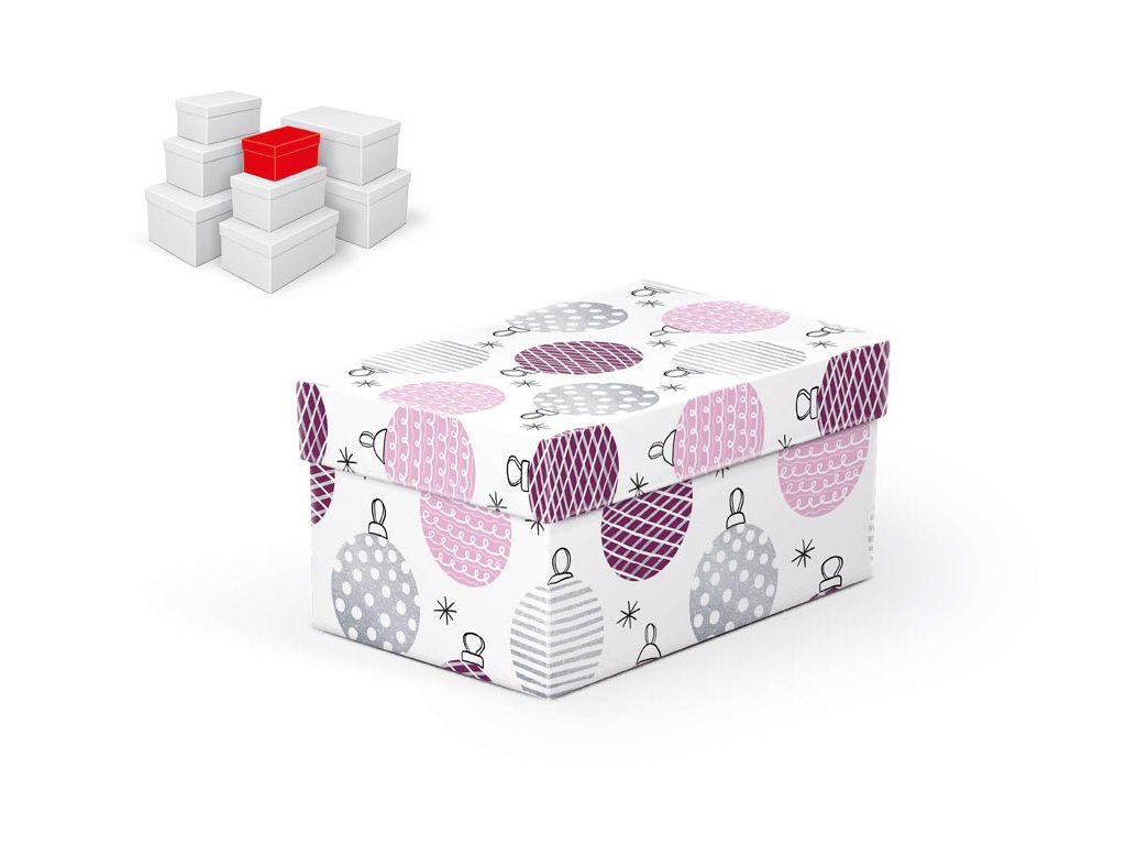 Vianočná darčeková krabička s rozmermi 16 x 10 x 8 cm Darčeková krabička s motívom vianočných ozdôb. Ideálna pre rýchle a ľahké zabalenie vianočných darčekov. Dodávame iba v sete 8 darčekových krabičiek, ktoré sú v rovnakom dizajne, ale v rôznych veľkostiach. Pri vložení do košíka sa automaticky vložia aj ostatné krabičky, tak aby ste mali v košíku vždy celý, kompletný set. Uvedená cena je za 1 ks. Materiál: 1,5 mm kartón, potiahnutý luxusným papierom Set obsahuje tieto krabice: 5370716 Krabica darčeková vianočná B-V003-A 16x10x8 cm 5370717 Krabica darčeková vianočná B-V003-B 18x11x9 cm 5370718 Krabica darčeková vianočná B-V003-C 20x12x10 cm 5370719 Krabica darčeková vianočná B-V003-D 22x14x11 cm 5370720 Krabica darčeková vianočná B-V003-E 24x16x12 cm 5370721 Krabica darčeková vianočná B-V003-F 26x17x13 cm 5370722 Krabica darčeková vianočná B-V003-G 28x18x14 cm 5370723 Krabica darčeková vianočná B-V003-H 30x19x15 cmDodatočné parametre