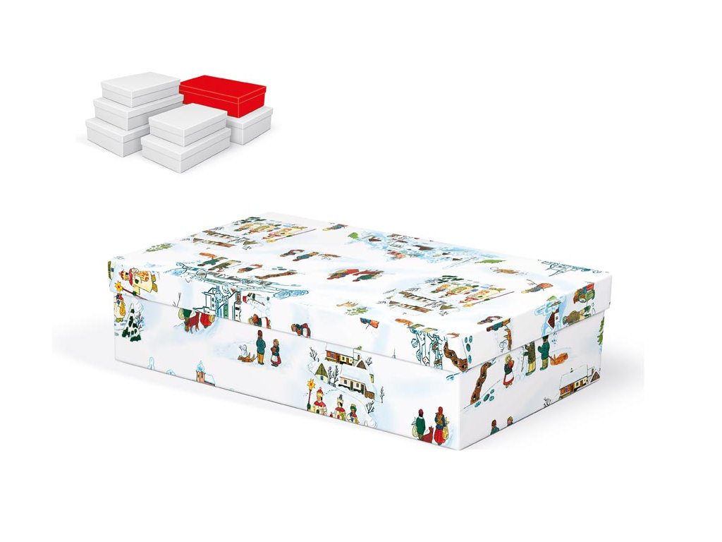 Vianočná darčeková krabička s motívmi Josefa Ladu s rozmermi 32 x 20 x 8 cm S touto krabičkou bude váš darček rýchlo a reprezentatívne zabalený. Dodávame len v súprave 7 darčekových krabíc, ktoré sú v rovnakom dizajne, ale v rôznych veľkostiach. Keď ich vložíte do košíka, ostatné škatule sa automaticky vložia, aby ste mali v košíku vždy celú, kompletnú sadu. Cena je uvedená za 1 ks. Materiál: 1,5 mm kartón potiahnutý luxusným papierom Súprava obsahuje tieto krabice: 5370755 Darčeková krabička A-V005-AL 24x16x6 cm 5370756 Darčeková krabička A-V005-BL 26x17x6 cm 5370757 Darčeková krabička A-V005-CL 28x18x7 cm 5370758 Darčeková krabička A-V005-DL 30x19x7 cm 5370759 Darčeková krabička A-V005-EL 32x20x8 cm 5370760 Darčeková krabička A-V005-FL 34x22x8 cm 5370761 Darčeková krabička A-V005-GL 36x22x9 cmDodatočné parametre