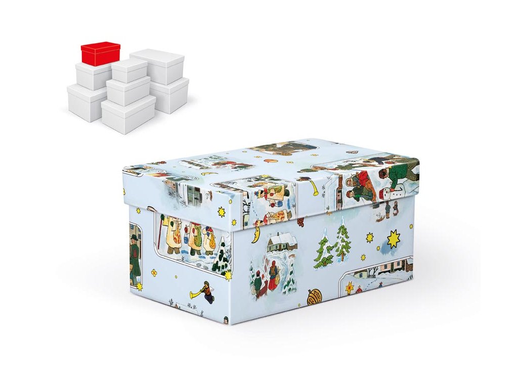 Vianočná darčeková krabička s motívmi Josefa Ladu s rozmermi 18 x 11 x 9 cm Vytvorte si doma atmosféru klasických slovenských Vianoc. Dodávame iba v sete 8 darčekových krabičiek, ktoré sú v rovnakom dizajne, ale v rôznych veľkostiach. Pri vložení do košíka sa automaticky vložia aj ostatné krabičky, tak aby ste mali v košíku vždy celý, kompletný set. Uvedená cena je za 1 ks. Materiál: 1,5 mm kartón, potiahnutý luxusným papierom Set obsahuje tieto krabice: 5370762 Krabica darčeková vianočná B-V005-AL 16x10x8 cm 5370763 Krabica darčeková vianočná B-V005-BL 18x11x9 cm 5370764 Krabica darčeková vianočná B-V005-CL 20x12x10 cm 5370765 Krabica darčeková vianočná B-V005-DL 22x14x11 cm 5370766 Krabica darčeková vianočná B-V005-EL 24x16x12 cm 5370767 Krabica darčeková vianočná B-V005-FL 26x17x13 cm 5370768 Krabica darčeková vianočná B-V005-GL 28x18x14 cm 5370769 Krabica darčeková vianočná B-V005-HL 30x19x15 cmDodatočné parametre