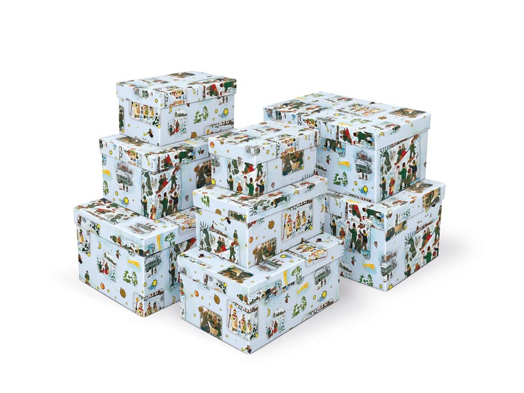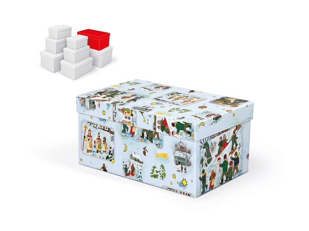 Vianočná darčeková krabička s motívmi Josefa Ladu s rozmermi 26 x 17 x 13 cm Vytvorte si doma atmosféru klasických slovenských Vianoc. Dodávame iba v sete 8 darčekových krabičiek, ktoré sú v rovnakom dizajne, ale v rôznych veľkostiach. Pri vložení do košíka sa automaticky vložia aj ostatné krabičky, tak aby ste mali v košíku vždy celý, kompletný set. Uvedená cena je za 1 ks. Materiál: 1,5 mm kartón, potiahnutý luxusným papierom Set obsahuje tieto krabice: 5370762 Krabica darčeková vianočná B-V005-AL 16x10x8 cm 5370763 Krabica darčeková vianočná B-V005-BL 18x11x9 cm 5370764 Krabica darčeková vianočná B-V005-CL 20x12x10 cm 5370765 Krabica darčeková vianočná B-V005-DL 22x14x11 cm 5370766 Krabica darčeková vianočná B-V005-EL 24x16x12 cm 5370767 Krabica darčeková vianočná B-V005-FL 26x17x13 cm 5370768 Krabica darčeková vianočná B-V005-GL 28x18x14 cm 5370769 Krabica darčeková vianočná B-V005-HL 30x19x15 cmDodatočné parametre