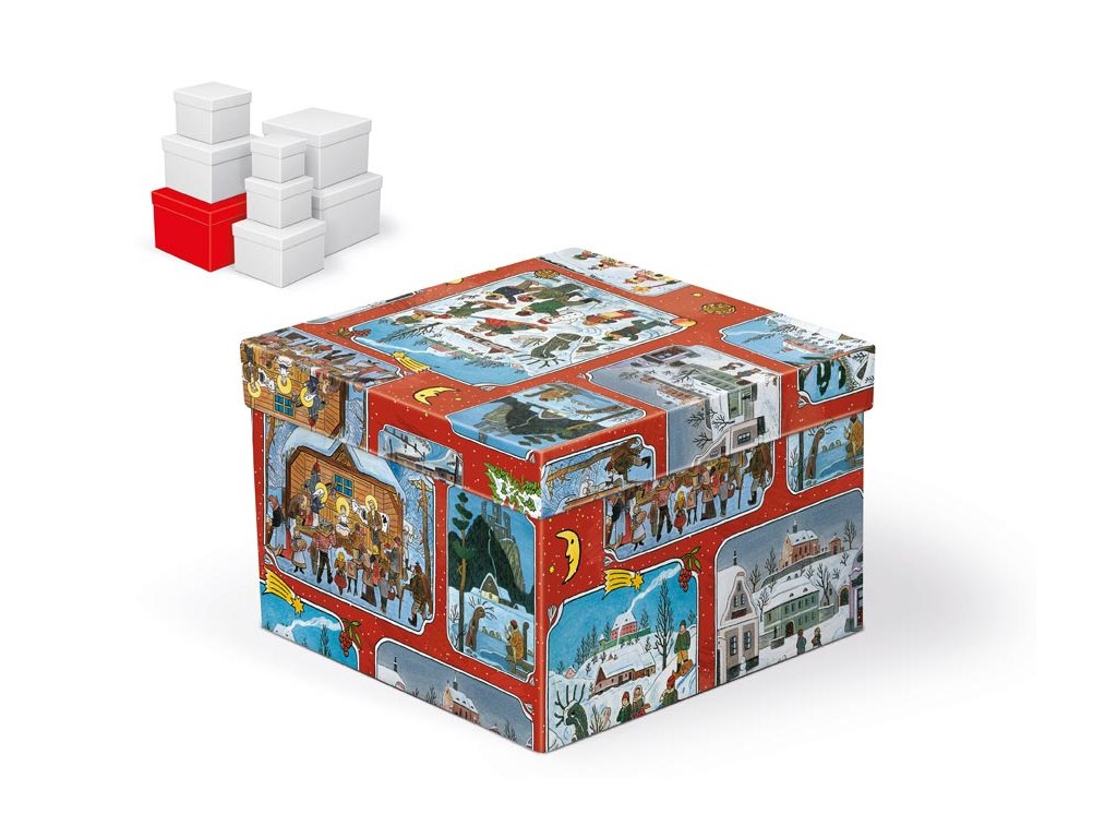 Vianočná darčeková krabička s motívmi Josefa Ladu s rozmermi 20 x 20 x 14 cm Dodávame len v súprave 8 darčekových krabičiek, ktoré sú v rovnakom dizajne, ale v rôznych veľkostiach. Keď ich vložíte do košíka, ostatné škatule sa automaticky vložia, takže v košíku budete mať vždy celú, kompletnú sadu. Cena je uvedená za 1 ks. Materiál: 1,5 mm kartón potiahnutý luxusným papierom Súprava obsahuje tieto krabice: 5370770 Vianočná darčeková krabička C-V005-AL 8x8x8 cm 5370771 Vianočná darčeková krabička C-V005-BL 10x10x9 cm 5370772 Vianočná darčeková krabička C-V005-CL 12x12x10 cm 5370773 Vianočná darčeková krabička C-V005-DL 14x14x11 cm 5370774 Vianočná darčeková krabička C-V005-EL 16x16x12 cm 5370775 Vianočná darčeková krabička C-V005-FL 18x18x13 cm 5370776 Vianočná darčeková krabička C-V005-GL 20x20x14 cm 5370777 Vianočná darčeková krabička C-V005-HL 22x22x15 cmDodatočné parametre