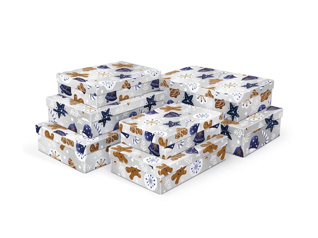 Vianočmá darčeková krabička s rozmermi 28 x 18 x 7 cm Darčeková krabička s motívom vianočných symbolov. Dodávame len v súprave 7 darčekových krabíc, ktoré sú v rovnakom dizajne, ale v rôznych veľkostiach. Pri vložení do košíka sa automaticky vložia aj ostatné krabice tak, aby ste mali v košíku vždy celú, kompletnú súpravu. Uvedená cena je za 1 ks. Matwriál: 1,5 mm kartón potiahnutý luxusným papierom. Súprava obsahuje tieto krabice: 5370901 Krabica darčeková vianočná A-V007-A 24x16x6cm 5370902 Krabica darčeková vianočná A-V007-B 26x17x6cm 5370903 Krabica darčeková vianočná A-V007-C 28x18x7cm 5370904 Krabica darčeková vianočná A-V007-D 30x19x7cm 5370905 Krabica darčeková vianočná A-V007-E 32x20x8cm 5370906 Krabica darčeková vianočná A-V007-F 34x22x8cm 5370907 Krabica darčeková vianočná A-V007-G 36x22x9cmDodatočné parametre