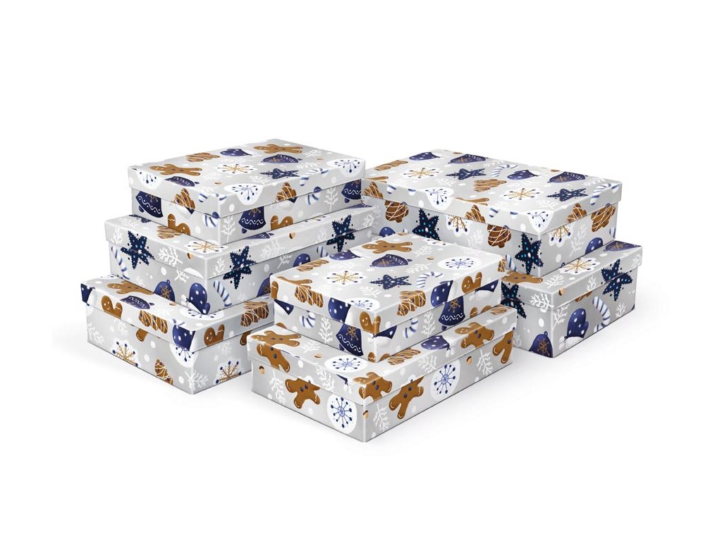 Vianočná darčeková krabička s motívom ozdôb o rozmeroch 36 x 22 x 9 cm Dodávame len v súpravách 7 darčekových krabíc, ktoré sú v rovnakom dizajne, ale v rôznych veľkostiach. Pri vložení do košíka sa automaticky vložia i ostatné krabice tak, aby ste mali v košíku vždy celú, kompletnú súpravu. Uvdená cena je za 1 ks. Metariál: 1,5 mm kartón, potiahnutý luxusný papierom Súprava obsahuje tieto krabice: 5370901 Krabica darčeková vianočná A-V007-A 24x16x6cm 5370902 Krabica darčeková vianočná A-V007-B 26x17x6cm 5370903 Krabica darčeková vianočná A-V007-C 28x18x7cm 5370904 Krabica darčeková vianočná A-V007-D 30x19x7cm 5370905 Krabica darčeková vianočná A-V007-E 32x20x8cm 5370906 Krabica darčeková vianočná A-V007-F 34x22x8cm 5370907 Krabica darčeková vianočná A-V007-G 36x22x9cmDodatočné parametre