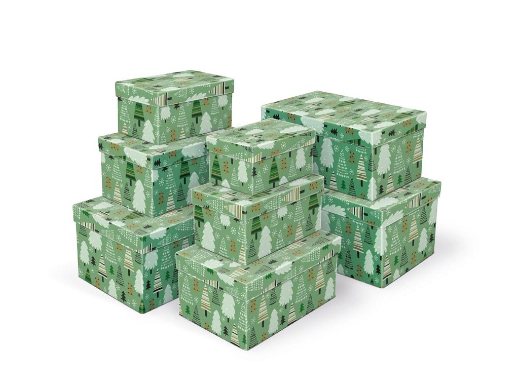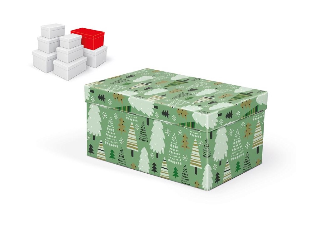 Vianočná darčeková krabička s rozmermi 26 x 17 x 13 cm Darčeková krabička s motívom vianočných stromčekov a vločiek.Dodávame len v súprave 8 darčekových krabičiek v rovnakom dizajne, ale v rôznych veľkostiach. Pri vožení do košíka sa automaticky vložia aj ostatné krabice tak, aby ste mali v košíku vždy celý, komletný súbor. Uvedená cena je za 1 ks. Mteriál: 1,5 mm kartón, potiahnutý luxusným papierom Súprava obsahuje tieto krabice: 5370915 Krabica darčeková vianočná B-V006-A 16x10x8 cm 5370916 Krabica darčeková vianočná B-V006-B 18x11x9 cm 5370917 Krabica darčeková vianočná B-V006-C 20x12x10 cm 5370918 Krabica darčeková vianočná B-V006-D 22x14x11 cm 5370919 Krabica darčeková vianočná B-V006-E 24x16x12 cm 5370920 Krabica darčeková vianočná B-V006-F 26x17x13 cm 5370921 Krabica darčeková vianočná B-V006-G 28x18x14 cm 5370922 Krabica darčeková vianočná B-V006-H 30x19x15 cmDodatočné parametre