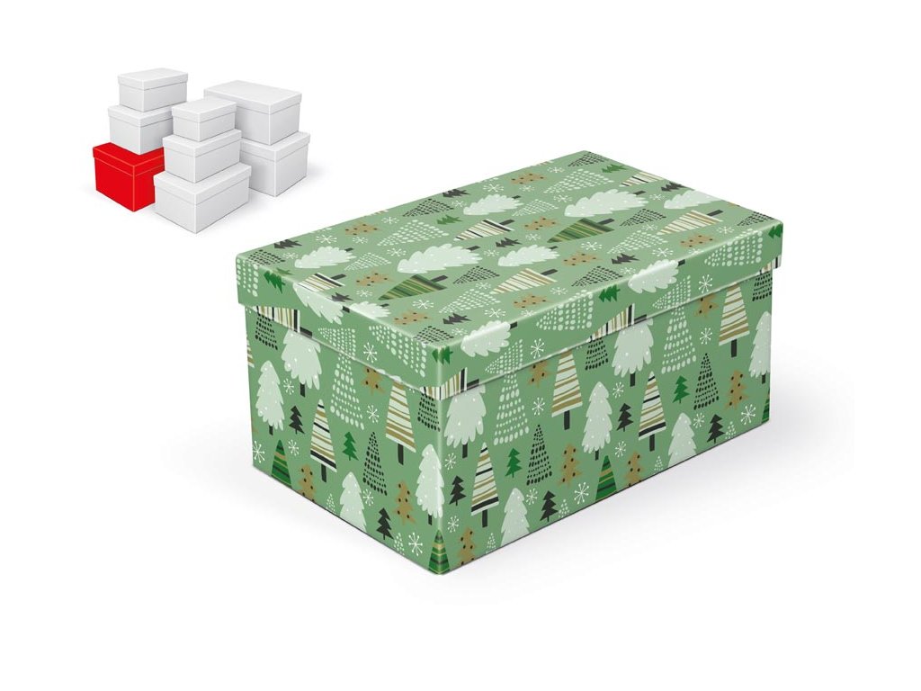 Vianočná darčeková krabička s rozmermi 28 x 18 x 14 cm Darčeková krabička s motívom vianočných stromčekov a vločiek.Dodávame len v súprave 8 darčekových krabičiek v rovnakom dizajne, ale v rôznych veľkostiach. Pri vožení do košíka sa automaticky vložia aj ostatné krabice tak, aby ste mali v košíku vždy celý, komletný súbor. Uvedená cena je za 1 ks. Mteriál: 1,5 mm kartón, potiahnutý luxusným papierom Súprava obsahuje tieto krabice: 5370915 Krabica darčeková vianočná B-V006-A 16x10x8 cm 5370916 Krabica darčeková vianočná B-V006-B 18x11x9 cm 5370917 Krabica darčeková vianočná B-V006-C 20x12x10 cm 5370918 Krabica darčeková vianočná B-V006-D 22x14x11 cm 5370919 Krabica darčeková vianočná B-V006-E 24x16x12 cm 5370920 Krabica darčeková vianočná B-V006-F 26x17x13 cm 5370921 Krabica darčeková vianočná B-V006-G 28x18x14 cm 5370922 Krabica darčeková vianočná B-V006-H 30x19x15 cmDodatočné parametre