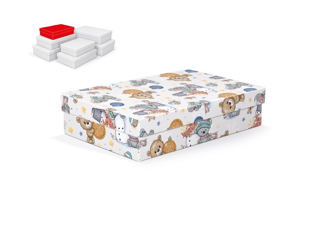 Vianočná darčeková krabička s rozmermi 26 x 17 x 6 cm Darčeková krabička s detským motívom medvedíkov, vianočných ozdôb a snehuliakov. Dodávame len v sade 7 darčekových krabíc, ktoré sú v rovnakom dizajne, ale v rôznych veľkostiach. Keď ich vložíte do košíka, ostatné škatule sa automaticky vložia, aby ste mali v košíku vždy celú, kompletnú sadu. Cena je uvedená za 1 ks. Materiál: 1,5 mm kartón, potiahnutý papierom s potlačou Súprava obsahuje tieto krabice: 5371023 Vianočná darčeková krabička A-V010-A 24x16x6 cm 5371024 Vianočná darčeková krabička A-V010-B 26x17x6 cm 5371025 Vianočná darčeková krabička A-V010-C 28x18x7 cm 5371026 Vianočná darčeková krabička A-V010-D 30x19x7 cm 5371027 Vianočná darčeková krabička A-V010-E 32x20x8 cm 5371028 Vianočná darčeková krabička A-V010-F 34x22x8 cm 5371029 Vianočná darčeková krabička A-V010-G 36x22x9 cmDodatočné parametre