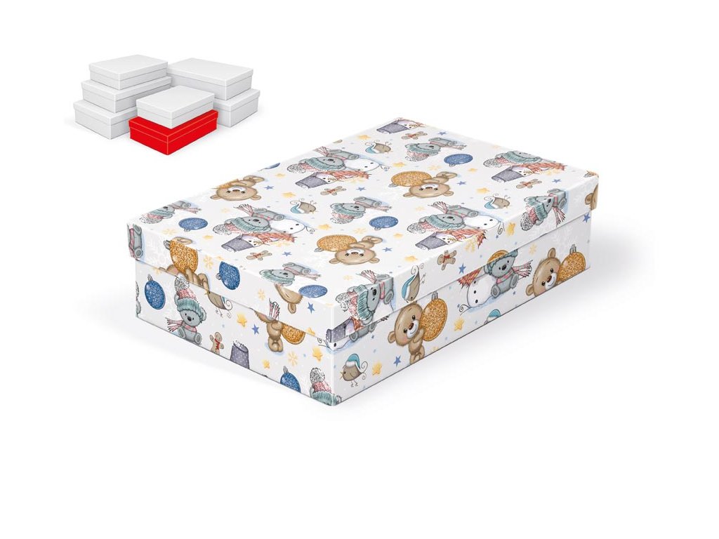 Vianočná darčeková krabička, rozmery 28 x 18 x 7 cm Darčeková krabička s detským motívom medvedíkov, vianočných ozdôb a snehuliakov. Dodávame len v sade 7 darčekových krabíc, ktoré sú v rovnakom dizajne, ale v rôznych veľkostiach. Keď ich vložíte do košíka, ostatné škatule sa automaticky vložia, aby ste mali v košíku vždy celú, kompletnú sadu. Cena je uvedená za 1 ks. Materiál: 1,5 mm kartón, potiahnutý papierom s potlačou Súprava obsahuje tieto krabice: 5371023 Vianočná darčeková krabička A-V010-A 24x16x6 cm 5371024 Vianočná darčeková krabička A-V010-B 26x17x6 cm 5371025 Vianočná darčeková krabička A-V010-C 28x18x7 cm 5371026 Vianočná darčeková krabička A-V010-D 30x19x7 cm 5371027 Vianočná darčeková krabička A-V010-E 32x20x8 cm 5371028 Vianočná darčeková krabička A-V010-F 34x22x8 cm 5371029 Vianočná darčeková krabička A-V010-G 36x22x9 cmDodatočné parametre