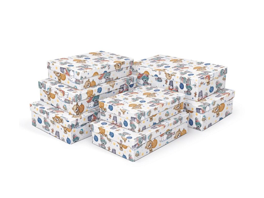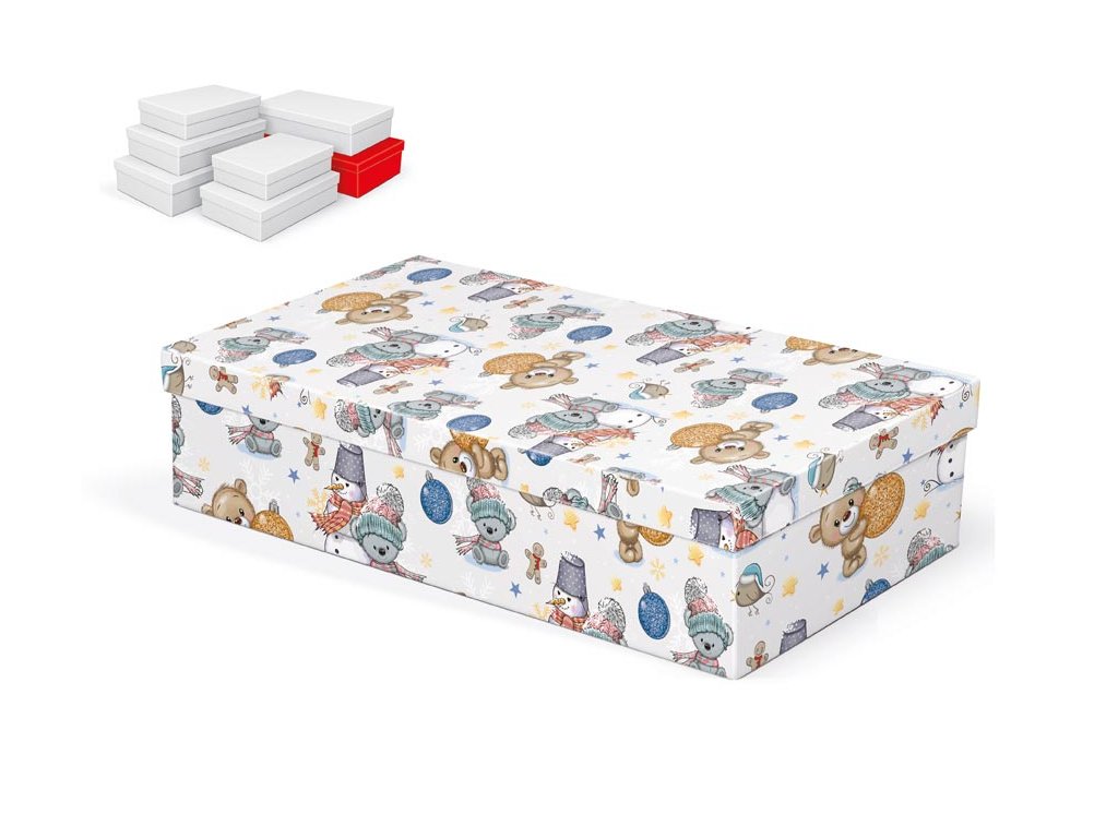 Vianočná darčeková krabička s rozmermi 36 x 22 x 9 cm Darčeková krabička s detským motívom medvedíkov, vianočných ozdôb a snehuliakov. Dodávame len v sade 7 darčekových krabíc, ktoré sú v rovnakom dizajne, ale v rôznych veľkostiach. Keď ich vložíte do košíka, ostatné škatule sa automaticky vložia, aby ste mali v košíku vždy celú, kompletnú sadu. Cena je uvedená za 1 ks. Materiál: 1,5 mm kartón, potiahnutý papierom s potlačou Súprava obsahuje tieto krabice: 5371023 Vianočná darčeková krabička A-V010-A 24x16x6 cm 5371024 Vianočná darčeková krabička A-V010-B 26x17x6 cm 5371025 Vianočná darčeková krabička A-V010-C 28x18x7 cm 5371026 Vianočná darčeková krabička A-V010-D 30x19x7 cm 5371027 Vianočná darčeková krabička A-V010-E 32x20x8 cm 5371028 Vianočná darčeková krabička A-V010-F 34x22x8 cm 5371029 Vianočná darčeková krabička A-V010-G 36x22x9 cmDodatočné parametre