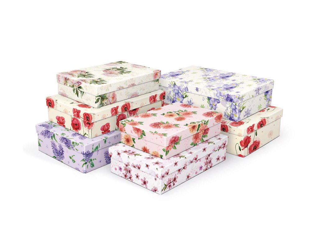 Celoročná darčeková krabička s rozmermi 26 x 17 x 6 cm NÁHODNÝ MIX MOTÍVOV Darčeková krabička s kvetinovým motívom. Vhodná na slávnostné príležitosti, na balenie darčekov na oslavy, svadby alebo len na uloženie rôznych drobností. Dodávame iba v sete 7 darčekových krabičiek, ktoré sú v rôznych dizajnoch a rôznych veľkostiach. Pri vložení do košíka sa automaticky vložia aj ostatné krabičky, tak aby ste mali v košíku vždy celý, kompletný set. Uvedená cena je za 1 ks. Materiál: 1,5 mm kartón, potiahnutý luxusným papierom Súprava obsahuje tieto krabice: 5371068 Darčeková krabica A-C008-A 24x16x6 cm 5371069 Darčeková krabica A-C008-B 26x17x6 cm 5371070 Darčeková krabica A-C008-C 28x18x7 cm 5371071 Darčeková krabica A-C008-D 30x19x7 cm 5371072 Darčeková krabica A-C008-E 32x20x8 cm 5371073 Darčeková krabica A-C008-F 34x22x8 cm 5371074 Darčeková krabica A-C008-G 36x22x9 cmDodatočné parametre