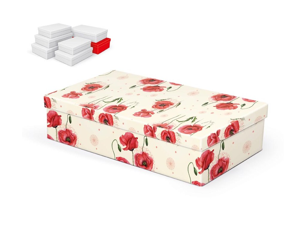 Celoročná darčeková krabička s rozmermi 36 x 22 x 9 cm NÁHODNÝ MIX MOTÍVOV Darčeková krabička s kvetinovým motívom. Vhodná na slávnostné príležitosti, na balenie darčekov na oslavy, svadby alebo len na uloženie rôznych drobností. Dodávame iba v sete 7 darčekových krabičiek, ktoré sú v rôznych dizajnoch a rôznych veľkostiach. Pri vložení do košíka sa automaticky vložia aj ostatné krabičky, tak aby ste mali v košíku vždy celý, kompletný set. Uvedená cena je za 1 ks. Materiál: 1,5 mm kartón, potiahnutý luxusným papierom Súprava obsahuje tieto krabice: 5371068 Darčeková krabica A-C008-A 24x16x6 cm 5371069 Darčeková krabica A-C008-B 26x17x6 cm 5371070 Darčeková krabica A-C008-C 28x18x7 cm 5371071 Darčeková krabica A-C008-D 30x19x7 cm 5371072 Darčeková krabica A-C008-E 32x20x8 cm 5371073 Darčeková krabica A-C008-F 34x22x8 cm 5371074 Darčeková krabica A-C008-G 36x22x9 cmDodatočné parametre