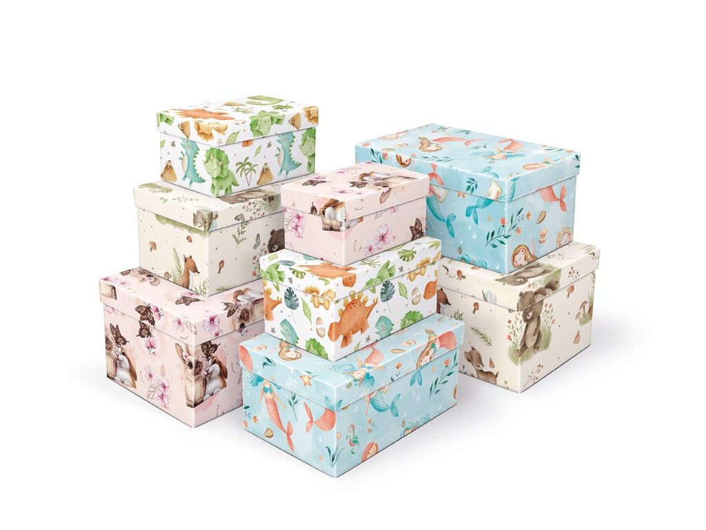 Detská darčeková krabička s rozmermi 16 x 10 x 8 cm NÁHODNÝ MIX MOTÍVOV Darčeková krabička s detským motívom. Vhodná na slávnostné príležitosti, na balenie darčekov na oslavy alebo len na uloženie rôznych drobností. Dodávame iba v sete 8 darčekových krabičiek, ktoré sú v rôznych dizajnoch a rôznych veľkostiach. Pri vložení do košíka sa automaticky vložia aj ostatné krabičky, tak aby ste mali v košíku vždy celý, kompletný set. Uvedená cena je za 1 ks. Materiál: 1,5 mm kartón, potiahnutý luxusným papierom Súprava obsahuje tieto krabice: 5371083 Darčeková krabica B-C009-A 16x10x8 cm 5371084 Darčeková krabica B-C009-B 18x11x9 cm 5371085 Darčeková krabica B-C009-C 20x12x10 cm 5371086 Darčeková krabica B-C009-D 22x14x11 cm 5371087 Darčeková krabica B-C009-E 24x16x12 cm 5371088 Darčeková krabica B-C009-F 26x17x13 cm 5371089 Darčeková krabica B-C009-G 28x18x14 cm 5371090 Darčeková krabica B-C009-H 30x19x15 cmDodatočné parametre