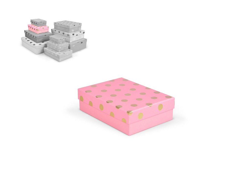 Celoročná darčeková krabička s rozmermi 22 x 16 x 6,5 cm NÁHODNÝ MIX Darčeková krabička v kombinácii farieb so zlatými bodkami. Vhodná na slávnostné príležitosti, dekoračné účely, balenie osobných darčekov alebo na uloženie rôznych drobností. Po pridaní jednej krabičky do košíka sa automaticky pridá celá súprava, ktorá obsahuje krabičky s rôznymi vzormi a veľkosťami. Táto variabilita Vám zaručuje, že máte k dispozícii krabičky vhodné na rôzne príležitosti a typy darčekov. Krabičky sú elegantne navrhnuté a navzájom ladia svojimi farbami a vzormi, čím vytvárajú harmonickú súpravu ideálnu na každú príležitosť. Materiál: 1,5 mm kartón, potiahnutý papierom s potlačou Súprava obsahuje tieto krabice: 5371115 Darčeková krabica D-L002-A 14,5x10x5cm 5371116 Darčeková krabica D-L002-B 17x12x5,5cm 5371117 Darčeková krabica D-L002-C 19x13,5x6cm 5371118 Darčeková krabica D-L002-D 22x16x6,5cm 5371119 Darčeková krabica D-L002-E 24,5x17,5x7cm 5371120 Darčeková krabica D-L002-F 27,5x19,5x7,5cm 5371121 Darčeková krabica D-L002-G 29x21x8cm 5371122 Darčeková krabica D-L002-H 33x23,5x9cm 5371123 Darčeková krabica D-L002-I 35x25x10cm 5371124 Darčeková krabica D-L002-J 37x27x11cm Uvedená cena je za 1 ks.Dodatočné parametre