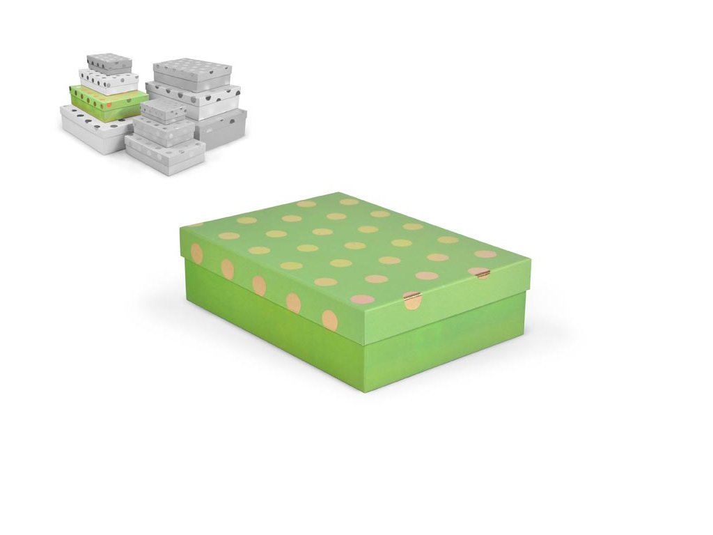 Celoročná darčeková krabička s rozmermi 29 x 21 x 8 cm NÁHODNÝ MIX Darčeková krabička v kombinácii farieb so zlatými bodkami. Vhodná na slávnostné príležitosti, dekoračné účely, balenie osobných darčekov alebo na uloženie rôznych drobností. Pri pridaní jednej krabičky do košíka sa automaticky pridá celá súprava, ktorá obsahuje krabičky s rôznymi vzormi a veľkosťami. Táto variabilita Vám zaručuje, že budete mať krabičky vhodné na rôzne príležitosti a typy darčekov. Krabičky sú elegantne navrhnuté a navzájom ladia svojimi farbami a vzormi, čím vytvárajú harmonickú súpravu ideálnu na každú príležitosť. Materiál: 1,5 mm kartón, potiahnutý papierom s potlačou Súprava obsahuje tieto krabice: 5371115 Darčeková krabica D-L002-A 14,5x10x5cm 5371116 Darčeková krabica D-L002-B 17x12x5,5cm 5371117 Darčeková krabica D-L002-C 19x13,5x6cm 5371118 Darčeková krabica D-L002-D 22x16x6,5cm 5371119 Darčeková krabica D-L002-E 24,5x17,5x7cm 5371120 Darčeková krabica D-L002-F 27,5x19,5x7,5cm 5371121 Darčeková krabica D-L002-G 29x21x8cm 5371122 Darčeková krabica D-L002-H 33x23,5x9cm 5371123 Darčeková krabica D-L002-I 35x25x10cm 5371124 Darčeková krabica D-L002-J 37x27x11cm Uvedená cena je za 1 ks.Dodatočné parametre