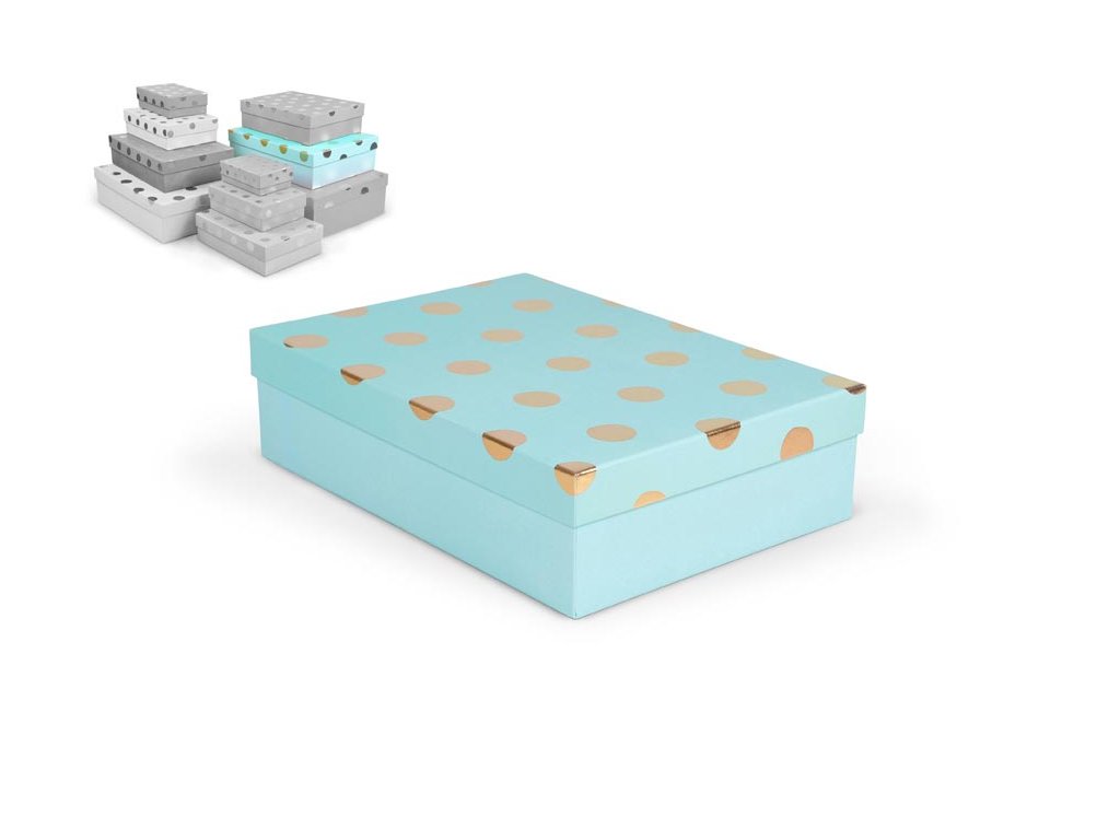 Celoročná darčeková krabička s rozmermi 33 x 23,5 x 9 cm NÁHODNÝ MIX Darčeková krabička v kombinácii farieb so zlatými bodkami. Vhodná na slávnostné príležitosti, dekoratívne účely, balenie osobných darčekov alebo na uloženie rôznych drobností. Po pridaní jednej krabičky do košíka sa automaticky pridá celá súprava, ktorá obsahuje krabičky s rôznymi vzormi a veľkosťami. Táto variabilita Vám zaručuje, že máte k dispozícii krabičky vhodné na rôzne príležitosti a typy darčekov. Krabičky sú elegantne navrhnuté a navzájom ladia svojimi farbami a vzormi, čím vytvárajú harmonickú súpravu ideálnu na každú príležitosť. Materiál: 1,5 mm kartón, potiahnutý papierom s potlačou Súprava obsahuje tieto krabice: 5371115 Darčeková krabica D-L002-A 14,5x10x5cm 5371116 Darčeková krabica D-L002-B 17x12x5,5cm 5371117 Darčeková krabica D-L002-C 19x13,5x6cm 5371118 Darčeková krabica D-L002-D 22x16x6,5cm 5371119 Darčeková krabica D-L002-E 24,5x17,5x7cm 5371120 Darčeková krabica D-L002-F 27,5x19,5x7,5cm 5371121 Darčeková krabica D-L002-G 29x21x8cm 5371122 Darčeková krabica D-L002-H 33x23,5x9cm 5371123 Darčeková krabica D-L002-I 35x25x10cm 5371124 Darčeková krabica D-L002-J 37x27x11cm Uvedená cena je za 1 ks.Dodatočné parametre
