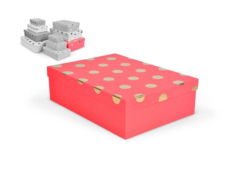 Celoročná darčeková krabička s rozmermi 37 x 27 x 11 cm NÁHODNÝ MIX Darčeková krabička v kombinácii farieb so zlatými bodkami. Vhodná na slávnostné príležitosti, dekoratívne účely, balenie osobných darčekov alebo na uloženie rôznych drobností. Po pridaní jednej krabičky do košíka sa automaticky pridá celá súprava, ktorá obsahuje krabičky s rôznymi vzormi a veľkosťami. Táto variabilita Vám zaručuje, že máte k dispozícii krabičky vhodné na rôzne príležitosti a typy darčekov. Krabičky sú elegantne navrhnuté a navzájom ladia svojimi farbami a vzormi, čím vytvárajú harmonickú súpravu ideálnu na každú príležitosť. Materiál: 1,5 kartón, potiahnutý papierom s potlačou Súprava obsahuje tieto krabice: 5371115 Darčeková krabica D-L002-A 14,5x10x5cm 5371116 Darčeková krabica D-L002-B 17x12x5,5cm 5371117 Darčeková krabica D-L002-C 19x13,5x6cm 5371118 Darčeková krabica D-L002-D 22x16x6,5cm 5371119 Darčeková krabica D-L002-E 24,5x17,5x7cm 5371120 Darčeková krabica D-L002-F 27,5x19,5x7,5cm 5371121 Darčeková krabica D-L002-G 29x21x8cm 5371122 Darčeková krabica D-L002-H 33x23,5x9cm 5371123 Darčeková krabica D-L002-I 35x25x10cm 5371124 Darčeková krabica D-L002-J 37x27x11cm Uvedená cena je za 1 ks.Dodatočné parametre