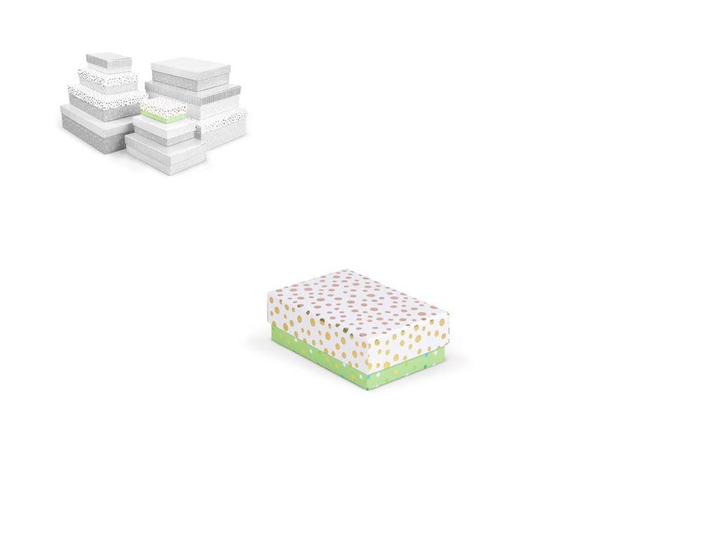 Celoročná darčeková krabička s rozmermi 14,5 x 10 x 5 cm NÁHODNÝ MIX Darčeková krabička v kombinácii pastelových farieb s rôznymi vzormi, ako sú bodky, prúžky alebo štruktúrovaný povrch. Vzory a farby sú zladené tak, aby vytvárali harmonický a elegantný vzhľad. Vhodná na slávnostné príležitosti, dekoratívne účely, balenie osobných darčekov alebo na uloženie rôznych drobností. Po pridaní jednej krabičky do košíka sa automaticky pridá celá súprava, ktorá obsahuje krabičky s rôznymi vzormi a veľkosťami. Táto varibalita Vám zaručuje, že máte k dispozícii krabičky vhodné na rôzne príležitosti a typy darčekov. Krabičky sú elegantne navrhnuté a navzájom ladia svojimi farbami a vzormi, čím vytvárajú harmonickú súpravu ideálnu na každú príležitosť. Materiál: 1,5 mm kartón, potiahnutý papierom s potlačou Súprava obsahuje tieto krabice: 5371135 Darčeková krabica D-L004-A 14,5x10x5cm 5371136 Darčeková krabica D-L004-B 17x12x5,5cm 5371137 Darčeková krabica D-L004-C 19x13,5x6cm 5371138 Darčeková krabica D-L004-D 22x16x6,5cm 5371139 Darčeková krabica D-L004-E 24,5x17,5x7cm 5371140 Darčeková krabica D-L004-F 27,5x19,5x7,5cm 5371141 Darčeková krabica D-L004-G 29x21x8cm 5371142 Darčeková krabica D-L004-H 33x23,5x9cm 5371143 Darčeková krabica D-L004-I 35x25x10cm 5371144 Darčeková krabica D-L004-J 37x27x11cm Uvedená cena je za 1 ks.Dodatočné parametre