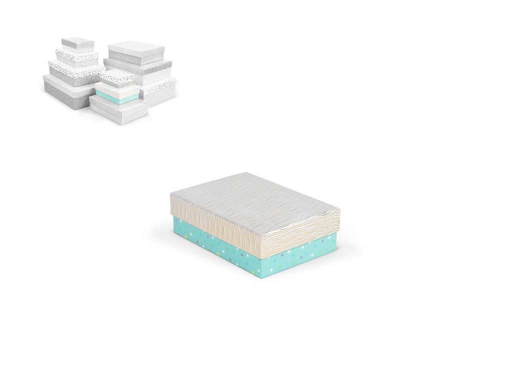 Celoročná darčeková krabička s rozmermi 19 x 13,5 x 6 cm NÁHODNÝ MIX Darčeková krabička v kombinácii pastelových farieb s rôznymi vzormi, ako sú bodky, prúžky alebo štruktúrovaný povrch. Vzory a farby sú zladené tak, aby vytvárali harmonický a elegantný vzhľad. Vhodná na slávnostné príležitosti, dekoratívne účely, balenie osobných darčekov alebo na uloženie rôznych drobností. Po pridaní jednej krabičky do košíka sa automaticky pridá celá súprava, ktorá obsahuje krabičky s rôznymi vzormi a veľkosťami. Táto variabilita Vám zaručuje, že máte k dispozícii krabičky vhodné na rôzne príležitosti a typy darčekov. Krabičky sú elegantne navrhnuté a navzájom ladia svojimi farbami a vzormi, čím vytvárajú harmonickú súpravu ideálnu na každú príležitosť. Materiál: 1,5 mm kartón, potiahnutý papierom s potlačou Súprava obsahuje tieto krabice: 5371135 Darčeková krabica D-L004-A 14,5x10x5cm 5371136 Darčeková krabica D-L004-B 17x12x5,5cm 5371137 Darčeková krabica D-L004-C 19x13,5x6cm 5371138 Darčeková krabica D-L004-D 22x16x6,5cm 5371139 Darčeková krabica D-L004-E 24,5x17,5x7cm 5371140 Darčeková krabica D-L004-F 27,5x19,5x7,5cm 5371141 Darčeková krabica D-L004-G 29x21x8cm 5371142 Darčeková krabica D-L004-H 33x23,5x9cm 5371143 Darčeková krabica D-L004-I 35x25x10cm 5371144 Darčeková krabica D-L004-J 37x27x11cm Uvedená cena je uvedená za 1 ks.Dodatočné parametre
