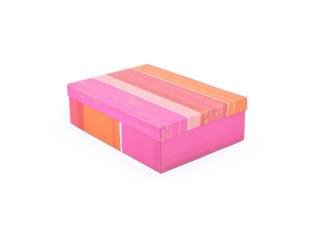 Celoročná darčeková krabica s rozmermi 37 x 27 x 11 cm NÁHODNÝ MIX Darčeková krabica zdobená jemnými pruhmi v elegantných pastelových farbách s trblietavými detailmi. Je ideálna pre balenie širokej škály darčekov, od drobných šperkov po väčšie predmety. košíka sa automaticky pridá celá sada, ktorá zahŕňa krabičky rovnakého dizajnu, ale rôznych veľkosťou Táto variabilita zaručuje, že budete mať krabičky vhodné na rôzne príležitosti a typy darčekov. Materiál: 1,5 mm kartón, potiahnutý papierom s potlačou Set obsahuje tieto krabice: 5371184 Krabica darčeková D-L005-A 14,5x10x5 cm 5371185 Krabica darčeková D-L005-B 17x12x5,5 cm 5371186 Krabica darčeková D-L005-C 19x13,5x6 cm 5371187 Krabica darčeková D-L005-D 22x16x6,5 cm 5371188 Krabica darčeková D-L005-E 24,5x17,5x7 cm 5371189 Krabica darčeková D-L005-F 27,5x19,5x7,5 cm 5371190 Krabica darčeková D-L005-G 29x21x8 cm 5371191 Krabica darčeková D-L005-H 33x23,5x9 cm 5371192 Krabica darčeková D-L005-I 35x25x10 cm 5371193 Krabica darčeková D-L005-J 37x27x11 cm Uvedená cena je za 1 ks.Dodatočné parametre