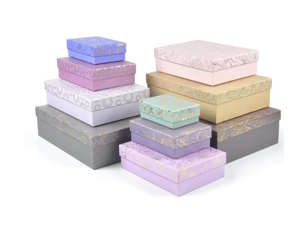 Celoročná darčeková krabica s rozmermi 33 x 23,5 x 9 cm NÁHODNÝ MIX Darčeková krabica v pastelových tónoch s vekom zdobeným jemným kvetinovým motívom, zvýrazneným luxusnými zlatými a striebornými trblietavými detailmi. Tento rafinovaný dizajn dodá vašim darčekom nádych elegancie a jedinečnosti, ideálny na zvláštne príležitosti. Pri vložení jednej krabičky do košíka sa automaticky pridá celá sada, ktorá zahŕňa krabičky s rôznymi kvetinovými designmi v odlišných veľkostiach a farbách. Táto variabilita zaručuje, že budete mať krabičky vhodné na rôzne príležitosti a typy darčekov. Materiál: 1,5 mm kartón, potiahnutý papierom s potlačou Set obsahuje tieto krabice: 5371214 Krabica darčeková D-L008-A 14,5x10x5 cm 5371215 Krabica darčeková D-L008-B 17x12x5, 5 cm 5371216 Krabica darčeková D-L008-C 19x13,5x6 cm 5371217 Krabica darčeková D-L008-D 22x16x6, 5cm 5371218 Krabica darčeková D-L008-E 24,5x17,5x7 cm 5371219 Krabica darčeková D-L008-F 27,5x19,5x7,5 cm 5371220 Krabica darčeková D-L008-G 29x21x8 cm 5371221 Krabica darčeková D-L008-H 33x23,5x9 cm 5371222 Krabica darčeková D-L008-I 35x25x10 cm 5371223 krabica darčeková D-L008-J 37x27x11 cm Uvedená cena je za 1 ks.Dodatočné parametre