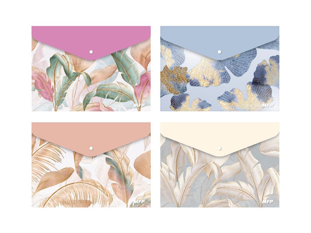 Uložte svoje dokumenty s eleganciou a štýlom! Táto dizajnová zložka vo formáte A4 s praktickým zapínaním na patentku je dokonalým spojením štýlu a funkčnosti. Vyrobená z kvalitného polypropylénu (PP) poskytuje maximálnu ochranu vašim dokumentom – je odolná voči mechanickému poškodeniu, vlhkosti aj každodennému opotrebovaniu. Vďaka ľahkému, no pevnému materiálu je ideálna na každodenné používanie – či už v kancelárii, škole alebo na cestách. Elegantné vzory a farebné kombinácie dodávajú zložke štýlový vzhľad, ktorý podčiarkne váš zmysel pre detail. Praktické zapínanie na patentku zabezpečí bezpečné uloženie vašich materiálov a jednoduchý prístup k nim vždy, keď ich budete potrebovať. Už žiadne pokrčené papiere ani stratené dokumenty – všetko bude vždy prehľadne usporiadané a chránené. Formát: A4 Materiál: PP Motív: listy v elegantných farebných kombináciách Dodávame v mixe 4 motívov podľa aktuálnej skladovej dostupnosti. Uvedená cena je za 1 ks.Dodatočné parametre