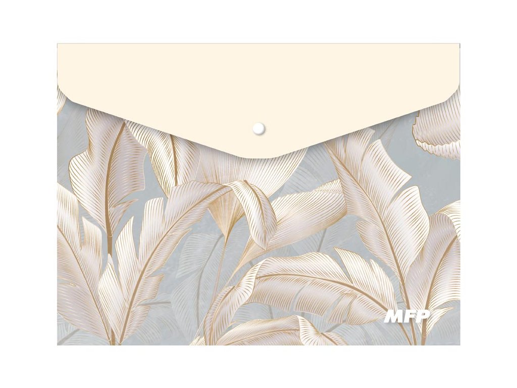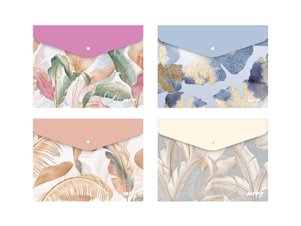Štýlová, praktická a odolná! Táto kompaktná zložka vo formáte A5 so zapínaním na patentku je ideálnym riešením na bezpečné uloženie a prehľadnú organizáciu vašich dokumentov. Vyrobená z kvalitného polypropylénu (PP), poskytuje spoľahlivú ochranu proti mechanickému poškodeniu aj vlhkosti. Vďaka širokej škále elegantných vzorov a farebných potlačí má každý kus jedinečný vzhľad, ktorý dodá vašim pracovným materiálom alebo študijným poznámkam nádych originality. Ľahký, no odolný materiál umožňuje jednoduché prenášanie, zatiaľ čo praktické zapínanie na patentku zabezpečí, že obsah zložky zostane vždy bezpečne uložený. Formát: A5 Materiál: PP Motív: listy v elegantných farebných kombináciách Dodávame v mixe motívov podľa aktuálnej skladovej dostupnosti. Uvedená cena je za 1 ks.Dodatočné parametre