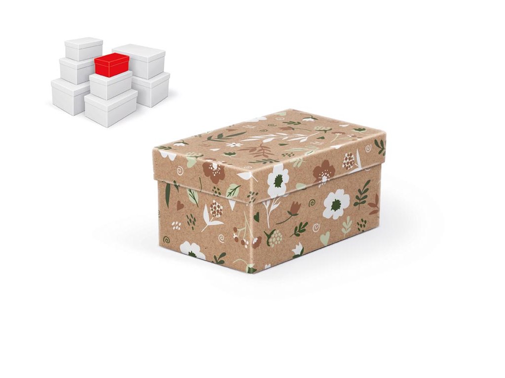 Celoročná darčeková krabica s rozmermi 16 x 10 x 8 cm NÁHODNÝ MIX Nie je to len krabička. Je to detail, ktorý dotvára okamih. Táto darčeková krabica v prírodnom štýle s kvetinovým motívom je dokonalým spojením estetiky a funkčnosti. Ideálna pre drobné darčeky, spomienky alebo maličkosti, ktoré chcete uchovať so starostlivosťou. A aj keď vyberáte len jednu, nikdy nezostane sama. Pri vložení jednej krabičky do košíka sa automaticky pridá celá sada, ktorá poteší rozmanitosťou veľkostí i vzorov. Či už ju darujete, alebo si ju necháte len pre seba – vždy poteší. Materiál: 1,5 mm kartón, potiahnutý papierom s potlačou Set obsahuje tieto krabice: 5371265 Škatuľa darčeková B-C011-A 16x10x8 cm 5371266 Škatuľa darčeková B-C011-B 18x11x9 cm 5371267 Škatuľa darčeková B-C011-C 20x12x10 cm 5371268 Krabica darčeková B-C011-D 22x14x11 cm 5371269 Krabica darčeková B-C011-E 24x16x12 cm 5371270 Škatuľa darčeková B-C011-F 26x17x13 cm 5371271 Krabica darčeková B-C011-G 28x18x14 cm 5371272 Krabica darčeková B-C011-H 30x19x15 cm Uvedená cena je za 1 ks.Dodatočné parametre