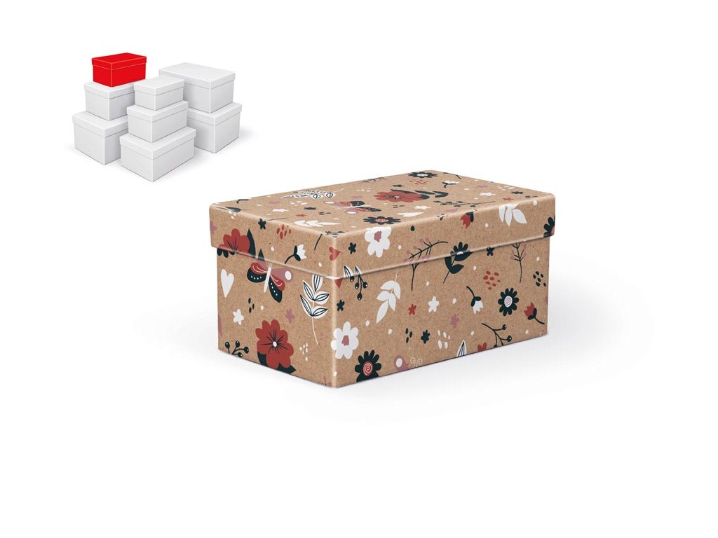 Celoročná darčeková krabica s rozmermi 18 x 11 x 9 cm NÁHODNÝ MIX Nie je to len obyčajná krabička. Je to malý detail, ktorý dotvára kúzlo okamihu. Darčeková krabica v prírodnom štýle s jemným kvetinovým motívom spája krásu a praktickosť v jednom. Skvele poslúži na zabalenie drobného darčeka, uchovanie spomienok alebo uschovanie maličkostí, ktoré si zaslúžia zvláštne miesto. A aj keď vyberáte len jednu, nikdy nezostane sama. Do košíka sa automaticky pridá celá sada – rozmanitá vo veľkostiach aj vzoroch, napriek tomu dokonale zladená. Krabičky sa vzájomne dopĺňajú a spoločne vytvárajú harmonický celok, pripravený na každú príležitosť. Pre radosť vlastnú aj zdieľanú - poteší v každom prípade. Materiál: 1,5 mm kartón, potiahnutý papierom s potlačou Set obsahuje tieto krabice: 5371265 Škatuľa darčeková B-C011-A 16x10x8 cm 5371266 Škatuľa darčeková B-C011-B 18x11x9 cm 5371267 Škatuľa darčeková B-C011-C 20x12x10 cm 5371268 Krabica darčeková B-C011-D 22x14x11 cm 5371269 Krabica darčeková B-C011-E 24x16x12 cm 5371270 Škatuľa darčeková B-C011-F 26x17x13 cm 5371271 Krabica darčeková B-C011-G 28x18x14 cm 5371272 Krabica darčeková B-C011-H 30x19x15 cm Uvedená cena je za 1 ks.Dodatočné parametre