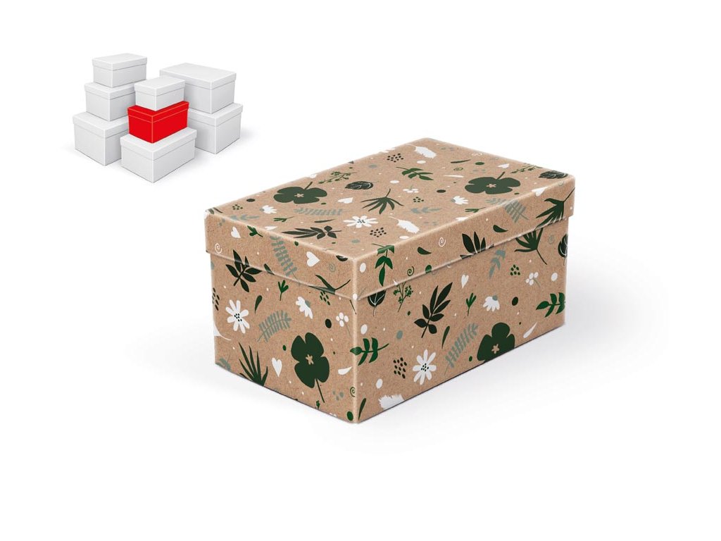 Celoročná darčeková krabica s rozmermi 20 x 12 x 10 cm NÁHODNÝ MIX Táto darčeková krabica v prírodnom štýle s jemným kvetinovým motívom spája estetiku a praktickosť v dokonale vyváženom celku. Skvele poslúži na zabalenie drobného darčeka, uchovanie spomienok alebo uschovanie maličkostí, ktoré si zaslúžia výnimočné miesto. Vybratím jednej krabičky získavate celú sadu, ktorá sa automaticky pridá do košíka. Líšia sa veľkosťou aj motívmi, ale vďaka zladeným farbám a vzorom pôsobia jednotne a elegantne. Ideálne pre kombinovanie aj samostatné použitie. Nezáleží, komu ju venujete – vždy prinesie úsmev. Materiál: 1,5 mm kartón, potiahnutý papierom s potlačou Set obsahuje tieto krabice: 5371265 Škatuľa darčeková B-C011-A 16x10x8 cm 5371266 Škatuľa darčeková B-C011-B 18x11x9 cm 5371267 Škatuľa darčeková B-C011-C 20x12x10 cm 5371268 Krabica darčeková B-C011-D 22x14x11 cm 5371269 Krabica darčeková B-C011-E 24x16x12 cm 5371270 Škatuľa darčeková B-C011-F 26x17x13 cm 5371271 Krabica darčeková B-C011-G 28x18x14 cm 5371272 Krabica darčeková B-C011-H 30x19x15 cm Uvedená cena je za 1 ks.Dodatočné parametre