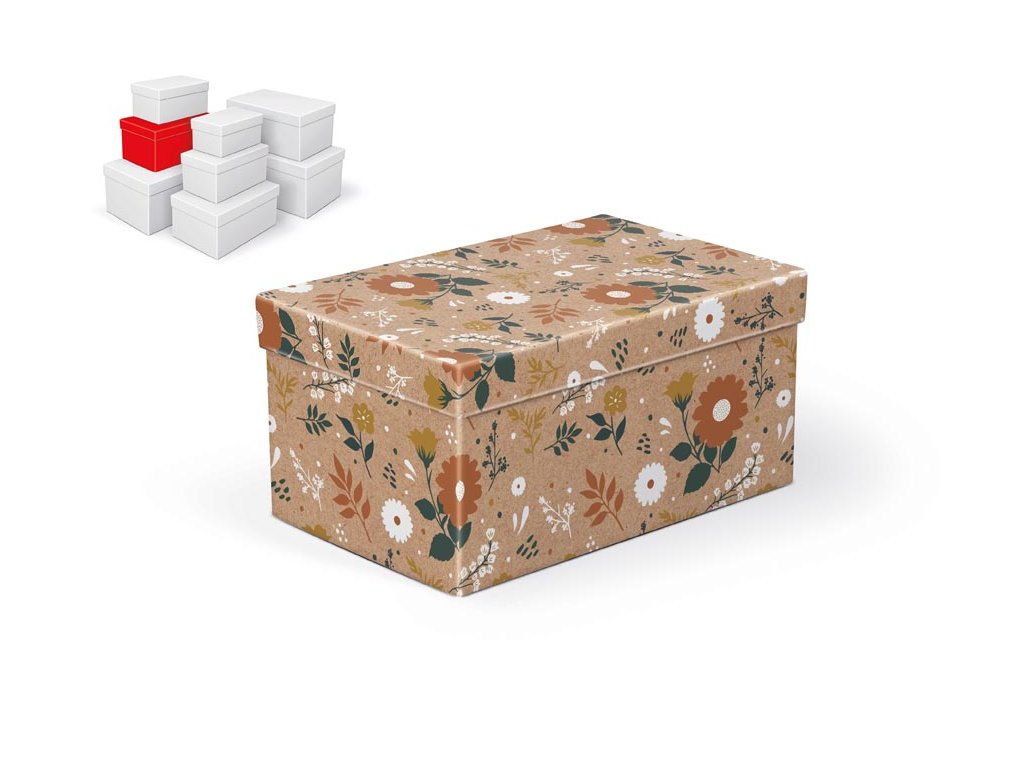 Celoročná darčeková krabica s rozmermi 22 x 14 x 11 cm NÁHODNÝ MIX Táto darčeková krabička v prírodnom štýle s decentným kvetinovým motívom je spojením elegancie a praktickosti. Skvele sa hodí na zabalenie drobného darčeka, uloženie spomienok alebo uschovanie maličkostí, ktoré si zaslúžia osobitnú pozornosť. Stačí vložiť jednu krabičku do košíka - celá sada sa pridá automaticky. Jednotlivé krabičky sa líšia veľkosťou i motívom, ale vďaka starostlivo zladeným farbám a vzorom tvoria vizuálne harmonický celok. Vyniknú spoločne, ale skvele fungujú aj samostatne. Materiál: 1,5 mm kartón, potiahnutý papierom s potlačou Set obsahuje tieto krabice: 5371265 Škatuľa darčeková B-C011-A 16x10x8 cm 5371266 Škatuľa darčeková B-C011-B 18x11x9 cm 5371267 Škatuľa darčeková B-C011-C 20x12x10 cm 5371268 Krabica darčeková B-C011-D 22x14x11 cm 5371269 Krabica darčeková B-C011-E 24x16x12 cm 5371270 Škatuľa darčeková B-C011-F 26x17x13 cm 5371271 Krabica darčeková B-C011-G 28x18x14 cm 5371272 Krabica darčeková B-C011-H 30x19x15 cm Uvedená cena je za 1 ks.Dodatočné parametre