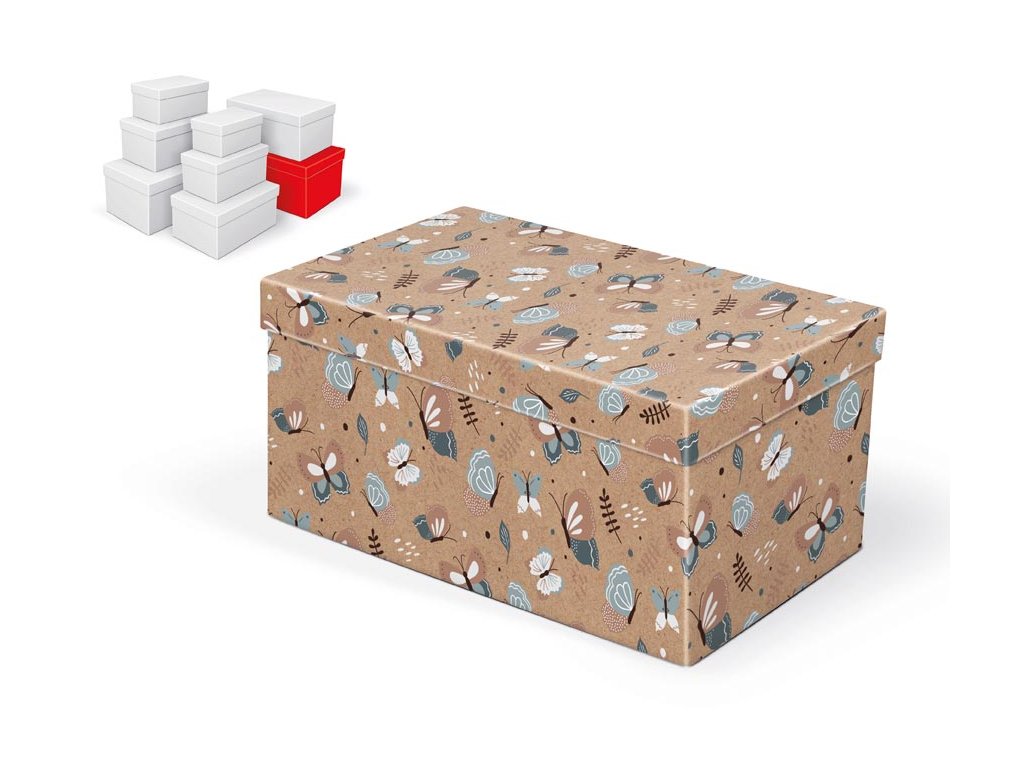 Celoročná darčeková krabica s rozmermi 30 x 19 x 15 cm NÁHODNÝ MIX Darčeková krabička v prírodnom štýle s nežným motívom motýľov a kvetov prináša nádych ľahkosti a elegancie. Jemné farby a hravý vzor z nej robia krásny doplnok pre každé balenie – ideálny na darčeky, spomienky aj drobnosti, ktorým chcete dať výnimočné miesto. Krabičky sa nepredávajú jednotlivo – pri vložení jednej do košíka automaticky obdržíte celú sadu. Líšia sa veľkosťou aj vzorom, ale vďaka zladenej farebnosti pôsobia ako dokonale harmonický celok. Skvele sa dopĺňajú a vyniknú ako spoločne, tak každá zvlášť. Materiál: 1,5 mm kartón, potiahnutý papierom s potlačou Set obsahuje tieto krabice: 5371265 Škatuľa darčeková B-C011-A 16x10x8 cm 5371266 Škatuľa darčeková B-C011-B 18x11x9 cm 5371267 Škatuľa darčeková B-C011-C 20x12x10 cm 5371268 Krabica darčeková B-C011-D 22x14x11 cm 5371269 Krabica darčeková B-C011-E 24x16x12 cm 5371270 Škatuľa darčeková B-C011-F 26x17x13 cm 5371271 Krabica darčeková B-C011-G 28x18x14 cm 5371272 Krabica darčeková B-C011-H 30x19x15 cm Uvedená cena je za 1 ks.Dodatočné parametre