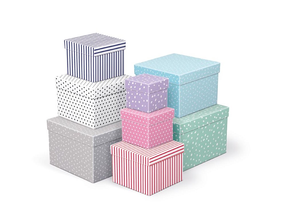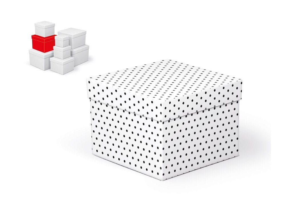 Celoročná darčeková krabica s rozmermi 16 × 16 × 12 cm NÁHODNÝ MIX Čiernobiela krabička s drobnými bodkami je stelesnením nadčasovej elegancie a minimalizmu. Či už ju použijete na malý darček, šperk alebo tajný odkaz, vždy pôsobí štýlovo a vkusne. Hodí sa na každú príležitosť – od narodenín až po svadobný dar. Je súčasťou sady 8 darčekových krabičiek, ktoré sa líšia nielen farbami, ale aj vzormi. Každá krabička v sete má svoj originálny vzhľad a spolu tvoria hravú a pestrú kolekciu. Pri vložení do košíka sa automaticky pridá celý set. Materiál: 1,5 mm kartón potiahnutý papierom s potlačou Set obsahuje tieto krabice: 5371273 – Krabica darčeková C-C009-A 8×8×8 cm 5371274 – Krabica darčeková C-C009-B 10×10×9 cm 5371275 – Krabica darčeková C-C009-C 12×12×10 cm 5371276 – Krabica darčeková C-C009-D14×14×11 cm 5371277 – Krabica darčeková C-C009-E16×16×12 cm 5371278 – Krabica darčeková C-C009-F 18×18×13 cm 5371279 – Krabica darčeková C-C009-G 20×20×14 cm 5371280 – Krabica darčeková C-C009-H 22×22×15 cm Uvedená cena je za 1 ks.Dodatočné parametre