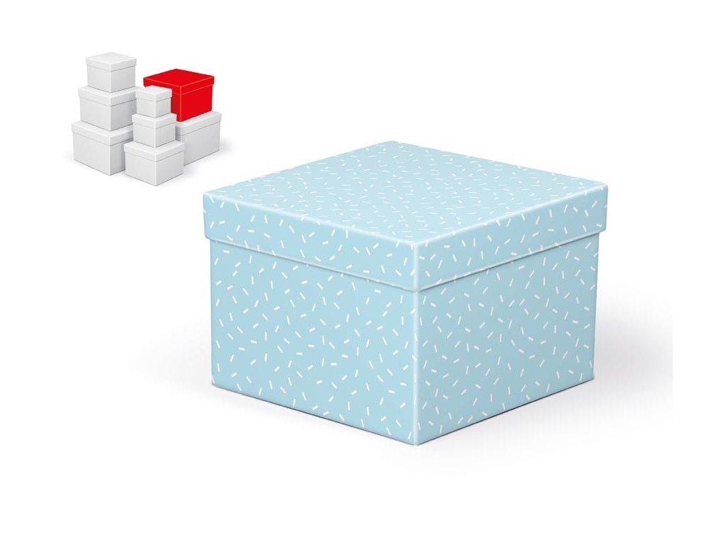 Celoročná darčeková krabica s rozmermi 18 × 18 × 13 cm NÁHODNÝ MIX Svetlomodrá darčeková krabička s jemným vzorom bielych čiar pôsobí moderne, hravo a zároveň decentne. Perfektná voľba na drobný darček, ktorý chcete zabaliť štýlovo a s ľahkosťou. Táto krabička je súčasťou sady 8 darčekových krabičiek, ktoré sa líšia farbou aj vzorom. Každá má svoj originálny vzhľad a spolu tvoria hravú a pestrú kolekciu. Pri vložení do košíka sa automaticky pridá celý set. Materiál: 1,5 mm kartón potiahnutý papierom s potlačou Set obsahuje tieto krabice: 5371273 – Krabica darčeková C-C009-A 8×8×8 cm 5371274 – Krabica darčeková C-C009-B 10×10×9 cm 5371275 – Krabica darčeková C-C009-C 12×12×10 cm 5371276 – Krabica darčeková C-C009-D14×14×11 cm 5371277 – Krabica darčeková C-C009-E16×16×12 cm 5371278 – Krabica darčeková C-C009-F 18×18×13 cm 5371279 – Krabica darčeková C-C009-G 20×20×14 cm 5371280 – Krabica darčeková C-C009-H 22×22×15 cm Uvedená cena je za 1 ks.Dodatočné parametre