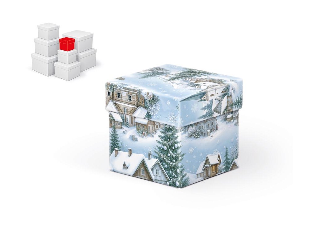 Vianočná darčeková krabica s rozmermi 8 × 8 × 8 cm Drobné darčeky si zaslúžia obal, ktorý im dodá výnimočnosť. Táto krabička je ideálna na šperky, pralinky, mini sviečky alebo iné malé pozornosti. Zdobí ju kúzelný motív zimnej dedinky – zasnežené chalúpky, vianočné stromčeky a jemné snehové vločky, ktoré vnesú do balenia pohodu zimných sviatkov. Pri vložení do košíka sa vždy automaticky objednáva celá sada ôsmich krabičiek s rovnakým motívom. Jednotlivé veľkosti samostatne zakúpiť nemožno. Materiál: 1,5 mm kartón, potiahnutý luxusným papierom SET OBSAHUJE TIETO KRABICE: 5371324 Krabica darčeková vianočná C-V010-A 8×8×8 cm 5371325 Krabica darčeková vianočná C-V010-B 10×10×9 cm 5371326 Krabica darčeková vianočná C-V010-C 12×12×10 cm 5371327 Krabica darčeková vianočná C-V010-D 14×14×11 cm 5371328 Krabica darčeková vianočná C-V010-E 16×16×12 cm 5371329 Krabica darčeková vianočná C-V010-F 18×18×13 cm 5371330 Krabica darčeková vianočná C-V010-G 20×20×14 cm 5371331 Krabica darčeková vianočná C-V010-H 22×22×15 cm Uvedená cena je za 1 ks.Dodatočné parametre