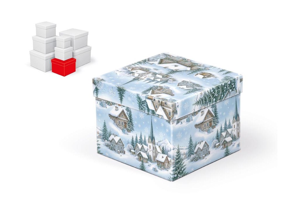 Vianočná darčeková krabica s rozmermi 14 × 14 × 11 cm Vianočná krabička s motívom zasneženej dedinky dokáže urobiť z balenia samotného malý zážitok. Zimná krajinka s chalúpkami a stromčekmi vytvára radostnú atmosféru, ktorá doplní kúzlo darčeka. Vďaka pevnému veku sa obsah nielen bezpečne uchová, ale celý balíček pôsobí úhľadne a pripravený rovno na odovzdanie. Tento produkt je k dispozícii iba ako sada ôsmich krabičiek. Každá má rovnaký motív, ale inú veľkosť, takže spoločne tvoria praktický celok na balenie drobností aj objemnejších darčekov. Do košíka sa vždy vkladá celá sada, jednotlivé krabičky zakúpiť nemožno. Materiál: 1,5 mm kartón, potiahnutý luxusným papierom SET OBSAHUJE TIETO KRABICE: 5371324 Krabica darčeková vianočná C-V010-A 8×8×8 cm 5371325 Krabica darčeková vianočná C-V010-B 10×10×9 cm 5371326 Krabica darčeková vianočná C-V010-C 12×12×10 cm 5371327 Krabica darčeková vianočná C-V010-D 14×14×11 cm 5371328 Krabica darčeková vianočná C-V010-E 16×16×12 cm 5371329 Krabica darčeková vianočná C-V010-F 18×18×13 cm 5371330 Krabica darčeková vianočná C-V010-G 20×20×14 cm 5371331 Krabica darčeková vianočná C-V010-H 22×22×15 cm Uvedená cena je za 1 ks.Dodatočné parametre