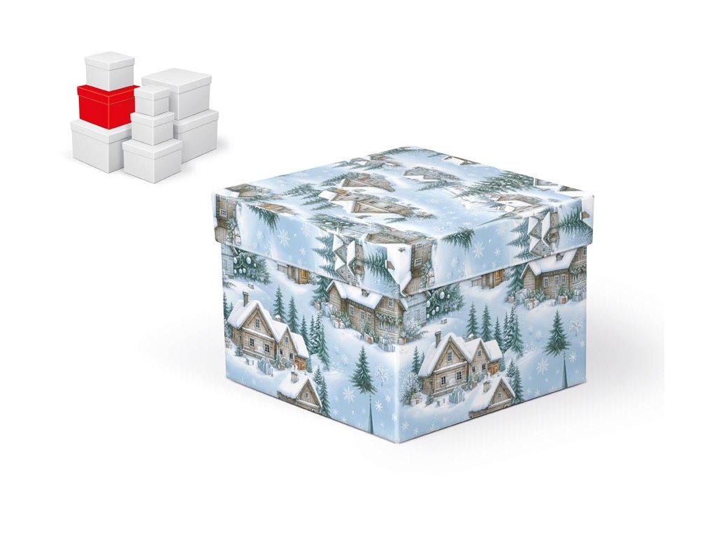 Vianočná darčeková krabica s rozmermi 16 × 16 × 12 cm Balenie darčekov môže byť jednoduché a pritom krásne. Táto krabička s motívom zimnej dedinky s chalúpkami a zasneženými stromčekmi premení obyčajný darček na niečo výnimočné. Vďaka pevnému veku zostane obsah dobre chránený a zároveň pripravený na okamžité odovzdanie. Krabička je súčasťou sady ôsmich kusov, všetky zdobí rovnaký motív, ale majú rôzne veľkosti. Spoločne tvoria praktický komplet na balenie drobností aj väčších darčekov. Pri nákupe sa do košíka vždy automaticky vkladá celá sada, jednotlivé krabičky nie je možné zakúpiť samostatne. Materiál: 1,5 mm kartón, potiahnutý luxusným papierom SET OBSAHUJE TIETO KRABICE: 5371324 Krabica darčeková vianočná C-V010-A 8×8×8 cm 5371325 Krabica darčeková vianočná C-V010-B 10×10×9 cm 5371326 Krabica darčeková vianočná C-V010-C 12×12×10 cm 5371327 Krabica darčeková vianočná C-V010-D 14×14×11 cm 5371328 Krabica darčeková vianočná C-V010-E 16×16×12 cm 5371329 Krabica darčeková vianočná C-V010-F 18×18×13 cm 5371330 Krabica darčeková vianočná C-V010-G 20×20×14 cm 5371331 Krabica darčeková vianočná C-V010-H 22×22×15 cm Uvedená cena je za 1 ks.Dodatočné parametre