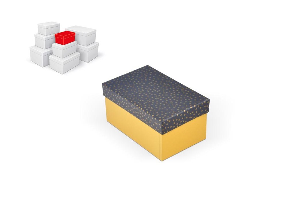 Celoročná darčeková krabica s rozmermi 16 × 10 × 8 cm NÁHODNÝ MIX Moderná elegancia, ktorá zaujme na prvý pohľad Štýlová darčeková krabička s tmavosivým vekom zdobeným zlatými bodkami a kontrastnou spodnou časťou je ideálnou voľbou na originálne a vkusné balenie darčekov. Výrazná farebná kombinácia pôsobí slávnostne, hravo a pritom nadčasovo. Skvele sa hodí na drobnosti, sladkosti alebo malé osobné prekvapenia. Pri vložení jednej krabičky do košíka sa automaticky pridá celá sada 8 krabičiek. Každá sada je jedinečná – farby a vzory krabičiek sa môžu v rámci kolekcie líšiť. Vďaka tomu je každý set originálny. Materiál: 1,5 mm kartón, potiahnutý papierom s potlačou SET OBSAHUJE TIETO KRABICE: 5371332 Krabica darčeková B-C012-A 16×10×8 cm 5371333 Krabica darčeková B-C012-B 18×11×9 cm 5371334 Krabica darčeková B-C012-C 20×12×10 cm 5371335 Krabica darčeková B-C012-D 22×14×11 cm 5371336 Krabica darčeková B-C012-E 24×16×12 cm 5371337 Krabica darčeková B-C012-F 26×17×13 cm 5371338 Krabica darčeková B-C012-G 28×18×14 cm 5371339 Krabica darčeková B-C012-H 30×19×15 cm Uvedená cena je za 1 ks.Dodatočné parametre